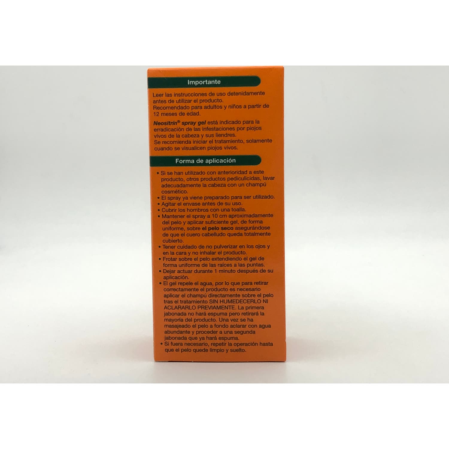 Neositrín Spray Gel Antipiojos 100ml es un tratamiento antipiojos en formato spray que ayuda a eliminar eficazmente piojos y liendres en 1 minuto, y actúa en la superficie, sin penetrar en la piel y desde la primera aplicación.