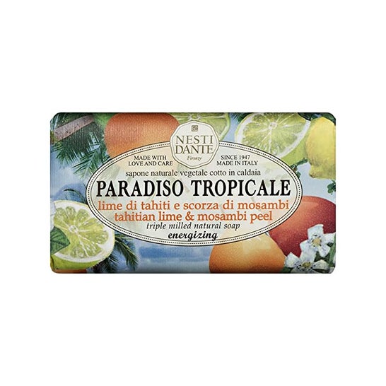 Jabón natural en barra formulado con base vegetal y aroma de lima de Tahití y cáscara de mosambi. Su composición no contiene parabenos, aceites minerales ni sulfatos. Ayuda a limpiar suavemente la piel brindando una sensación energizante. Sus suaves ingredientes son respetuosos con la piel y el medio ambiente. Elaborado bajo un proceso de triple molido. Indicado para uso diario en todo tipo de pieles.