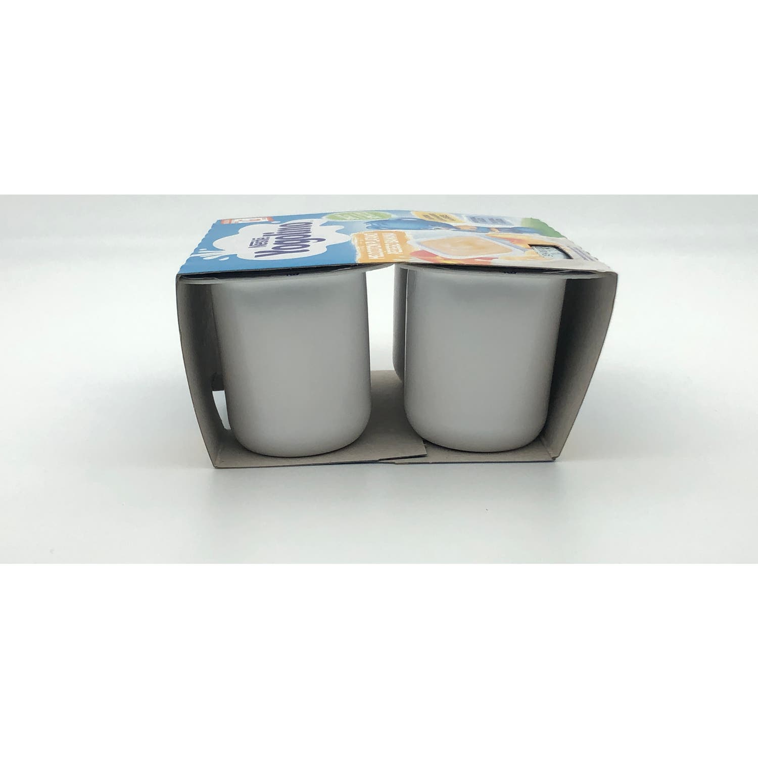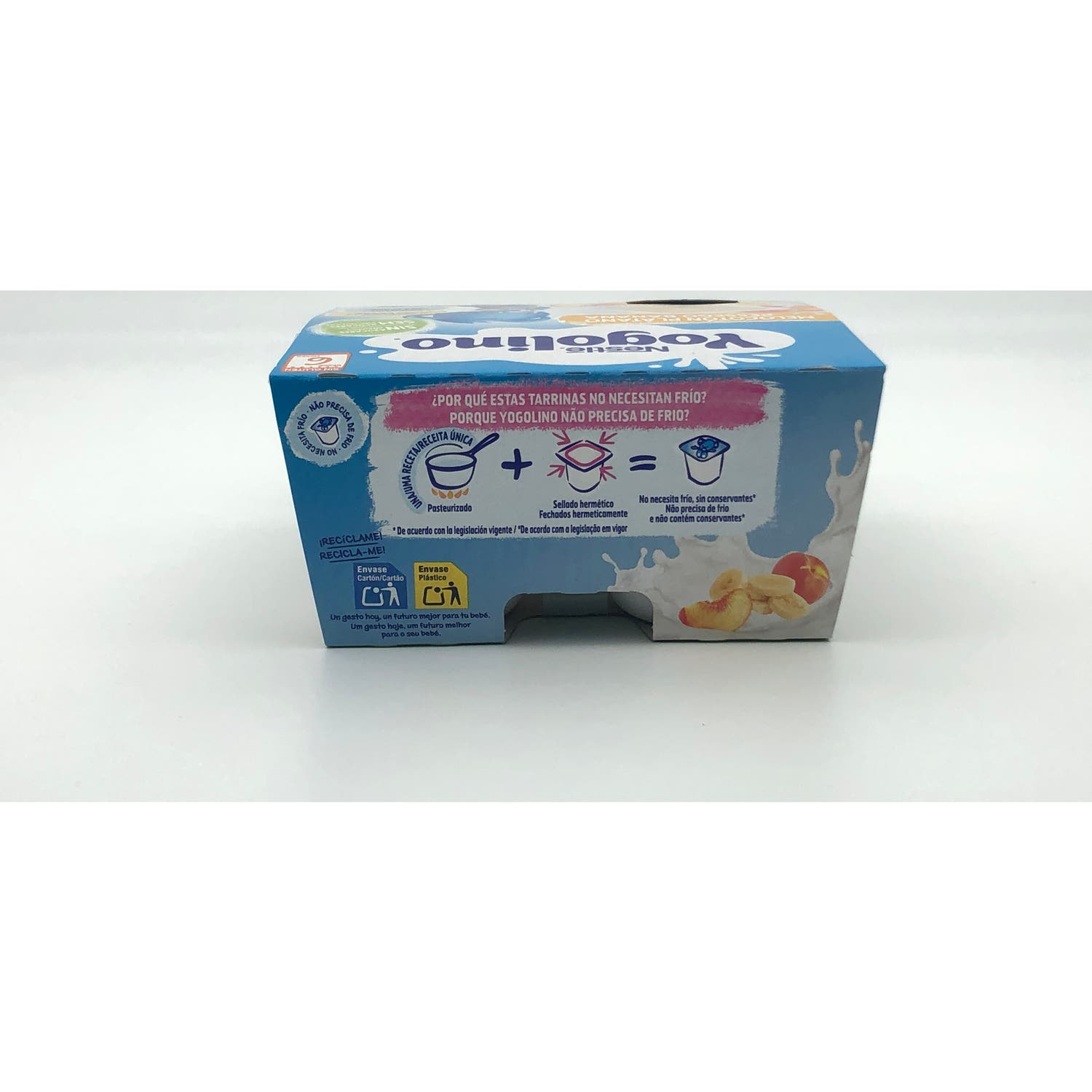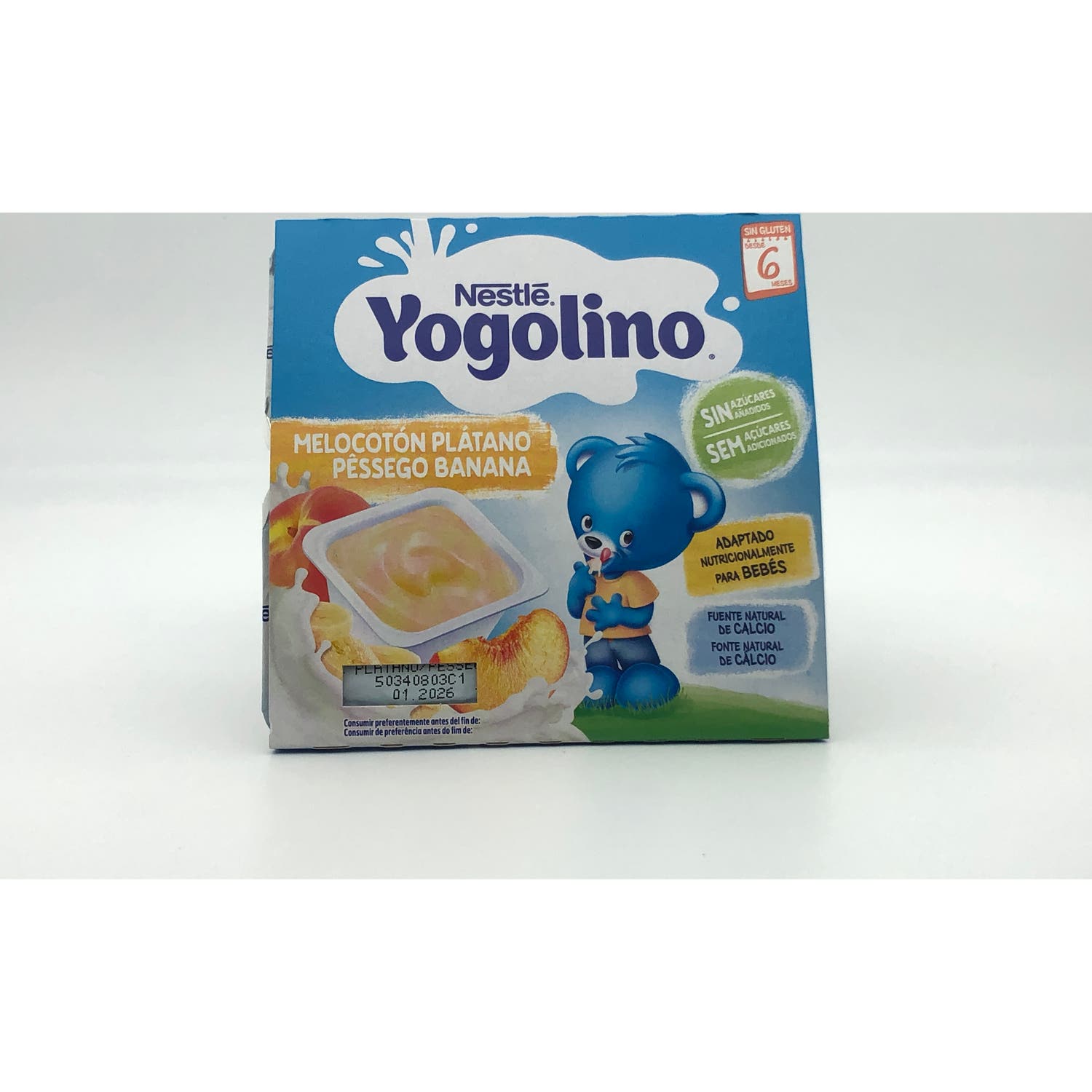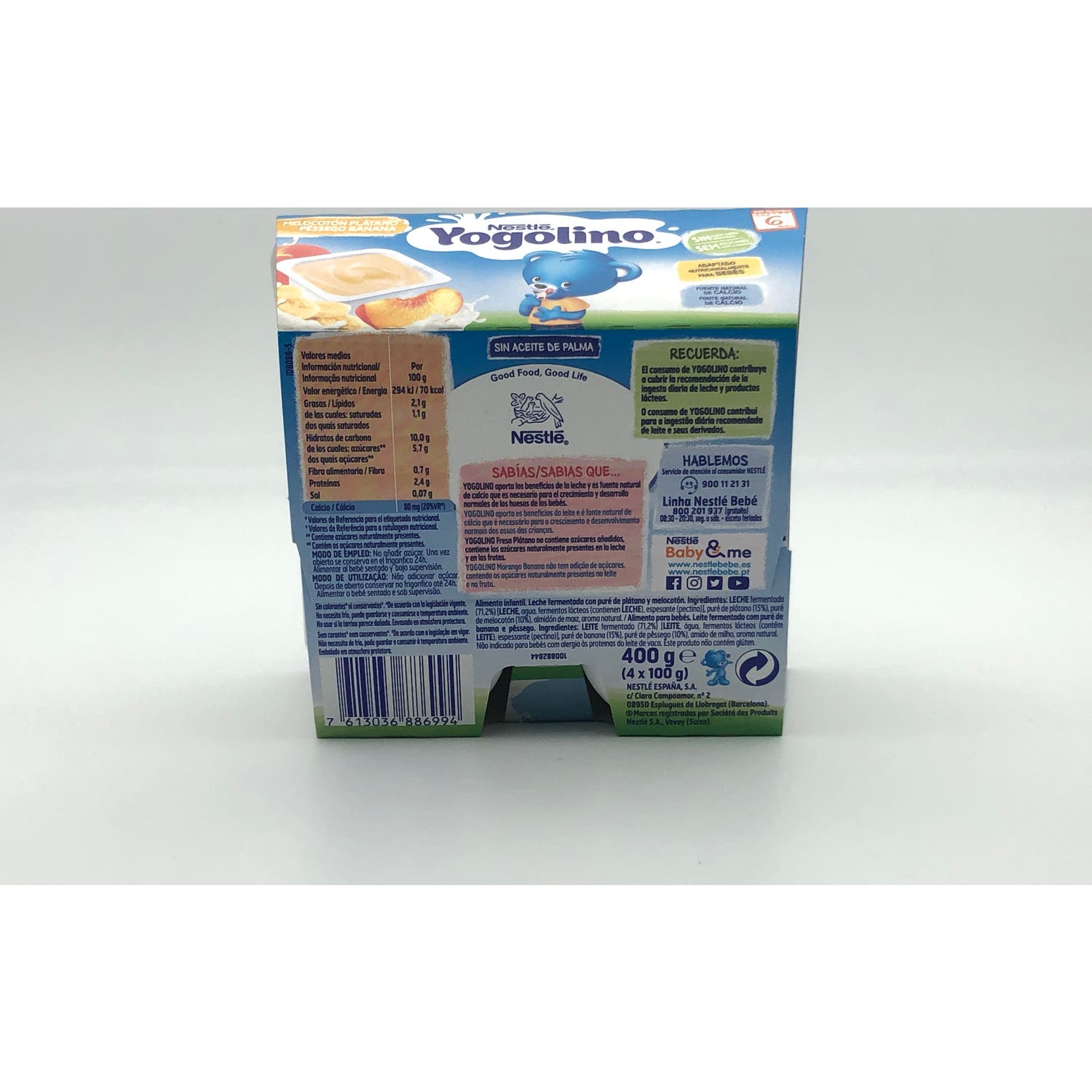 Pack de cuatro tarrinas de postre a base de un 80% de leche, vitaminas, melocotón y plátano. Se trata de un snack delicioso y sin gluten para los más pequeños de la casa. No contiene conservantes, colorantes ni aceite de palma. Apto para bebés a partir de los 6 meses.