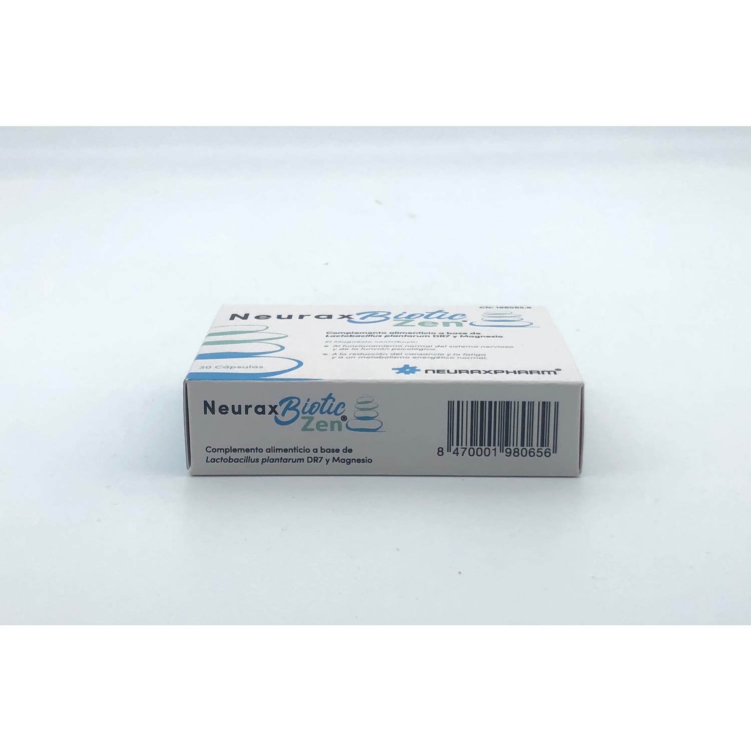 Neuraxbiotic Zen 30caps es un complemento alimenticio a base de Lactobacillus Plantarum DR7 y magnesio que favorece el funcionamiento normal del sistema nervioso y de la función psicológica.
