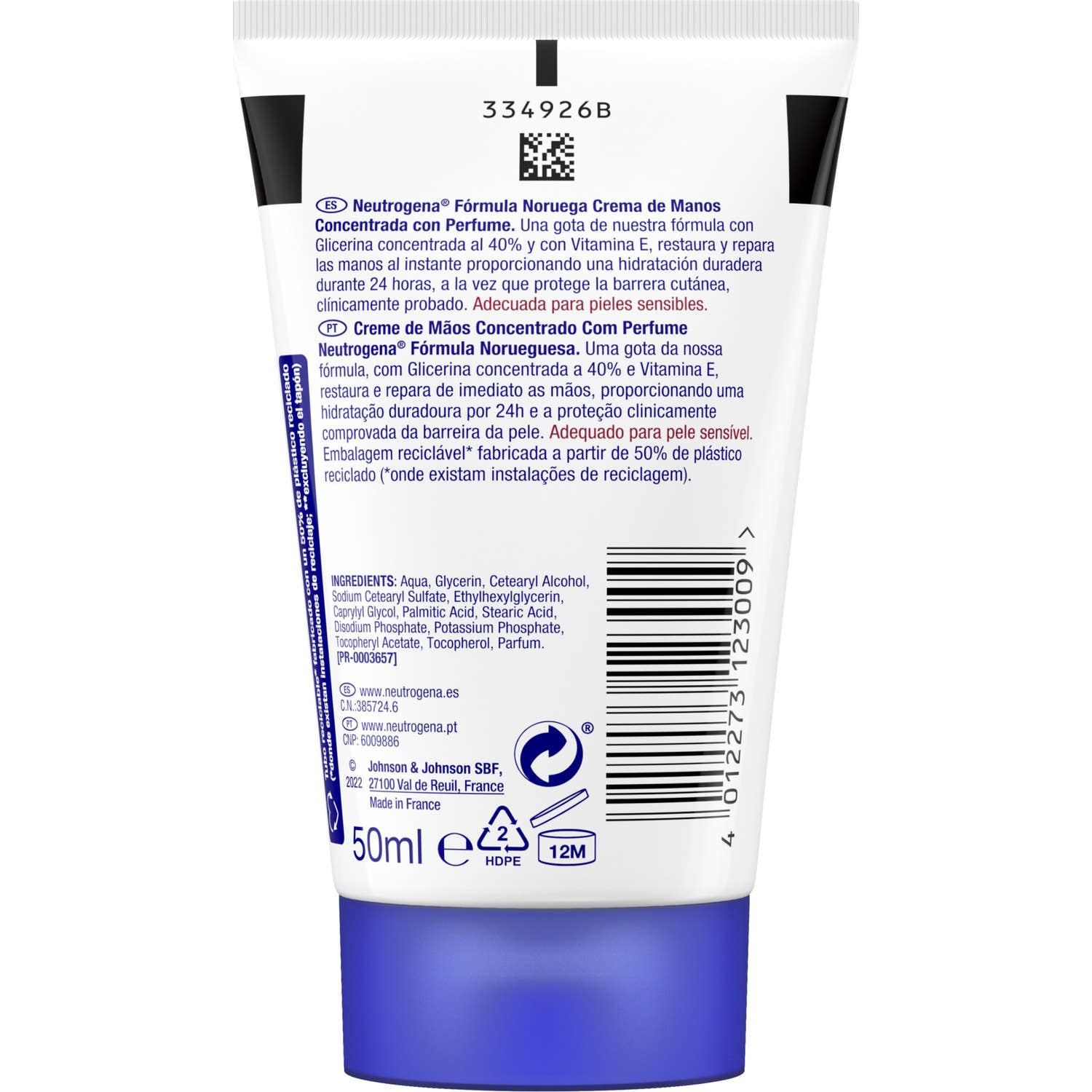 Formulada con glicerina que ayuda a calmar las manos más secas y agrietadas, incluso en condiciones extremas. Además, vaselina y pantenol, que consiguen calmar la inflamación y reparar cada una de las heridas de la piel y alto contenido de vitamina E, que favorece la revitalización celular y reduce el envejecimiento cutáneo. Posee un perfume ligero.