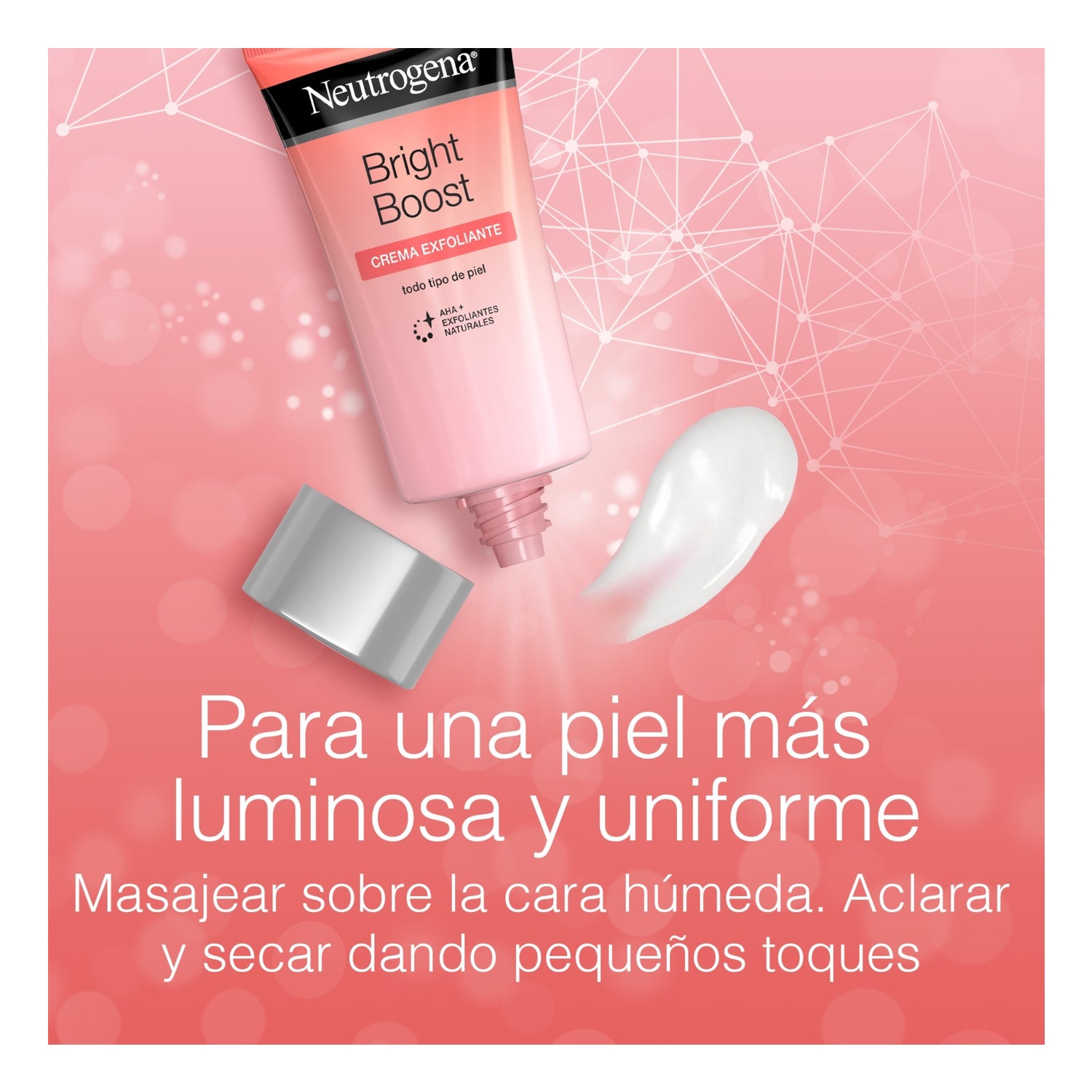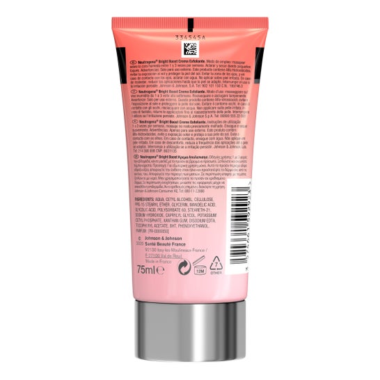 Neutrogena® Crema Exfoliante Bright Boost 75ml es una crema exfoliante desarrollada con AHA y polvo de perlas naturales. La composición facilita doble acción exfoliante y ayuda a disolver las impurezas de la piel opaca para obtener una piel visiblemente más luminosa y suave.