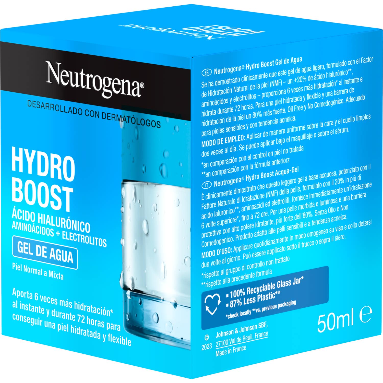 Neutrogena® Hydro Boost Gel de Agua 50ml es un gel facial que aporta una hidratación de larga duración a la piel del rostro.