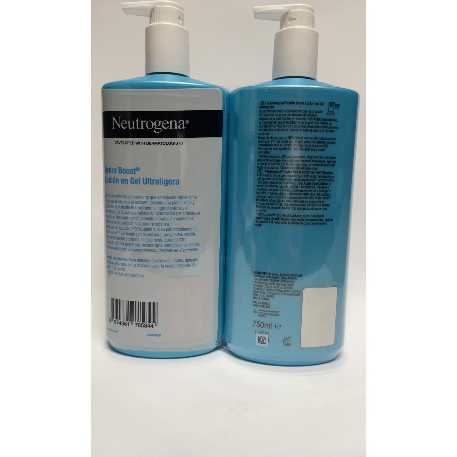 Neutrogena Hydro Boost Loción Corporal en Gel 2x750ml es una loción corporal que contribuye a la nutrición de la piel. Contribuye a dejar una piel más elástica y radiante, ya que su fórmula refrescante y ultraligera está enriquecida con ácido hialurónico, un ingrediente que se usa en el cuidado de la piel.