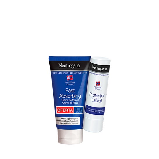 Neutrogena Pack Creme Mãos Absorción Rápida + Stick Labial es una solución completa para el cuidado de las manos y los labios. Este conjunto incluye: