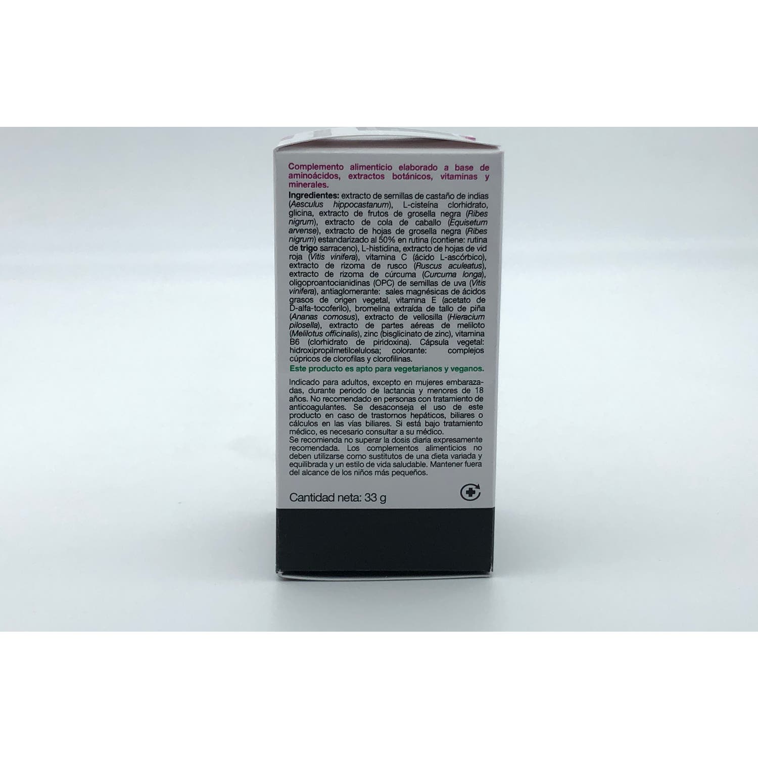 Formulado con aminoácidos esenciales, extracto de castaño de indias, vitamina C y rusco.