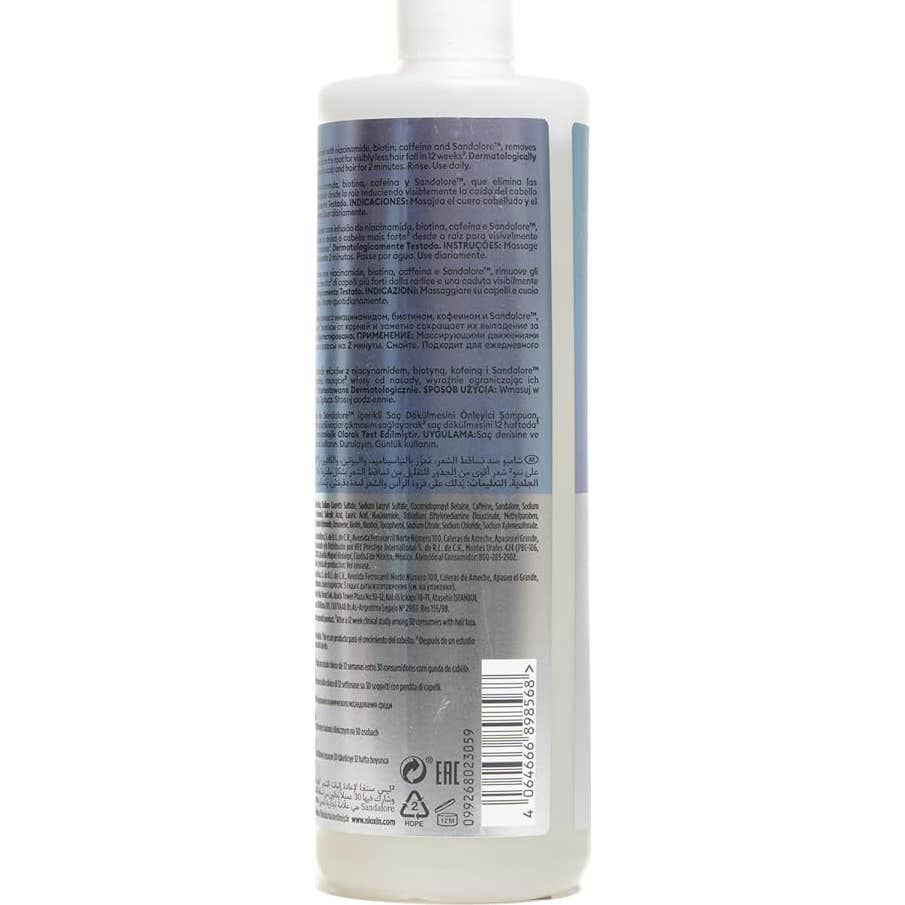 Este champú está formulado para eliminar impurezas y se ha demostrado clínicamente que favorece el fortalecimiento de las fibras capilares desde la raíz. Un estudio indica que el 93% de los usuarios notó una disminución visible en la caída del cabello tras 12 semanas de uso. Además, actúa como un tratamiento para el cuero cabelludo, limpiándolo a fondo y eliminando tanto impurezas como exceso de grasa.