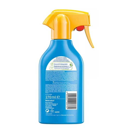 Nivea Sun Protege & Broncea Doble Efecto SPF20 270ml es un protector solar medio que previene los daños causados por la radiación UVA y UVB.
