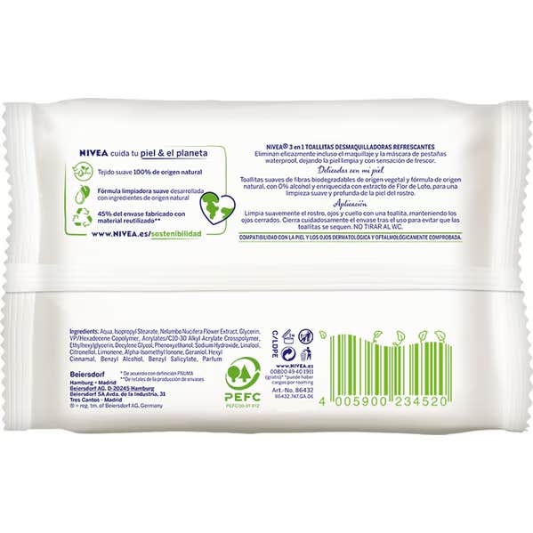 Las toallitas son aptas para pieles normales y mixtas, y han sido sometidas a pruebas dermatológicas y oftalmológicas para garantizar su seguridad. Además, están fabricadas con un tejido suave de origen vegetal y su composición contiene un 97% de ingredientes de origen natural, lo que refleja un compromiso tanto con el cuidado de la piel como con el medio ambiente.