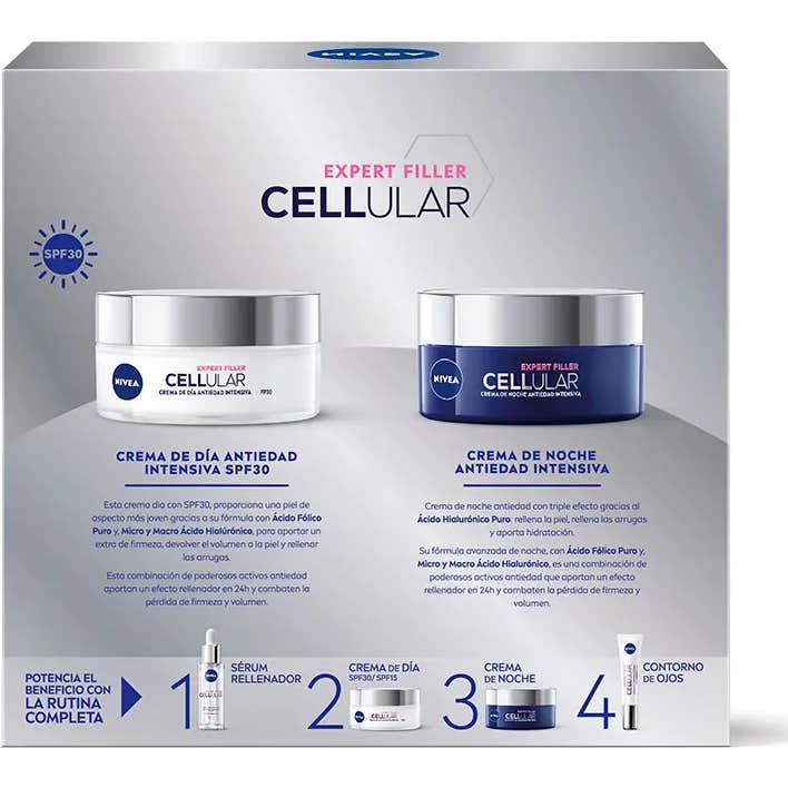 Nivea Tratamiento Extrafirmeza Pack Crema Día + Crema Noche es una solución ideal para quienes buscan una rutina de cuidado facial enfocada en la firmeza de la piel. Este pack incluye dos productos de la línea NIVEA Cellular Expert Filler: una crema de día y una crema de noche.