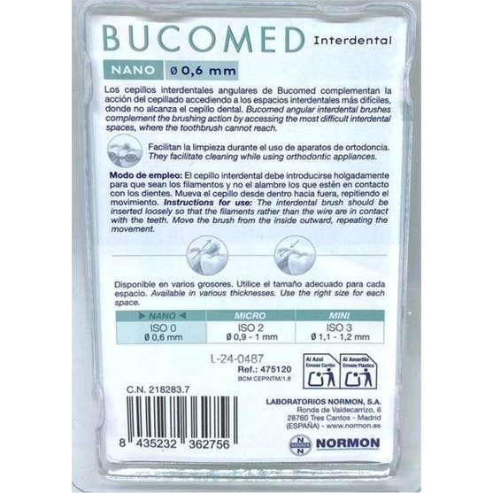 Normon Bucomed Cepillo Interdental Nano 0,6 mm 6 uds es un pack de 6 cepillos interdentales angulados para la limpieza interdental en espacios estrechos. Llega a zonas donde no alcanza el cepillo convencional y ayuda a eliminar placa y restos de comida con precisión, incluso en: