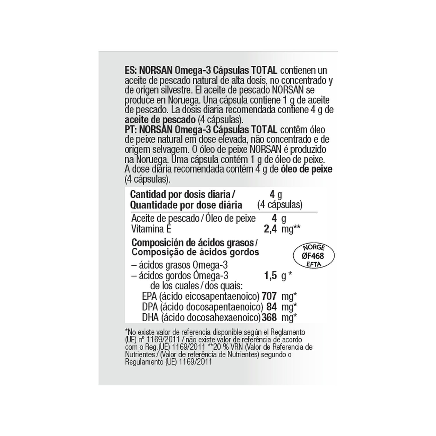 Norsan Omega-3 Total 120caps es un complemento alimenticio que actúa como coadyuvante para apoyar la función cardíaca, la función cerebral y la función visual.