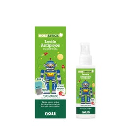 Nosa Attack Loción Piojos 5% Dimeticona 100ml loción anti piojos aroma de manzana. su composición con dimeticona de alta densidad genera una película que recubre a los piojos y liendres provocando su muerte. sus ingredientes lubrican el cuero cabelludo proporcionando una suavidad muy útil a la hora de pasar la lendrera. protección, prevención y cuidado sin irritación. se puede usar indistintamente en pelo corto y largo.