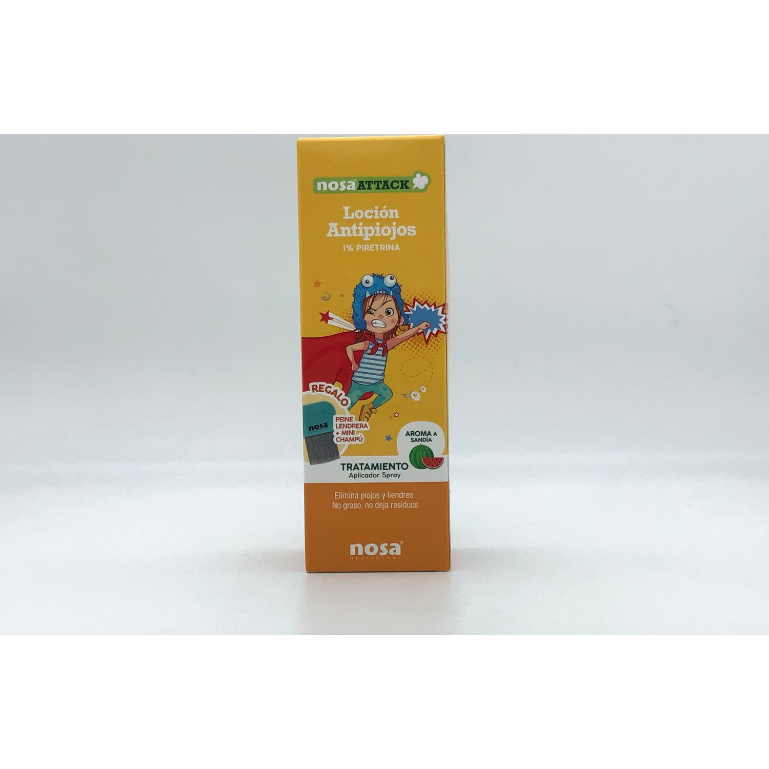 Nosa Loción Antipiojos 1% Piretrina aroma Sandía 150ml es una loción formulada con piretrina que ayuda a combatir los piojos.Además contiene una lendrera y un mini champú. Con aorma a sandía