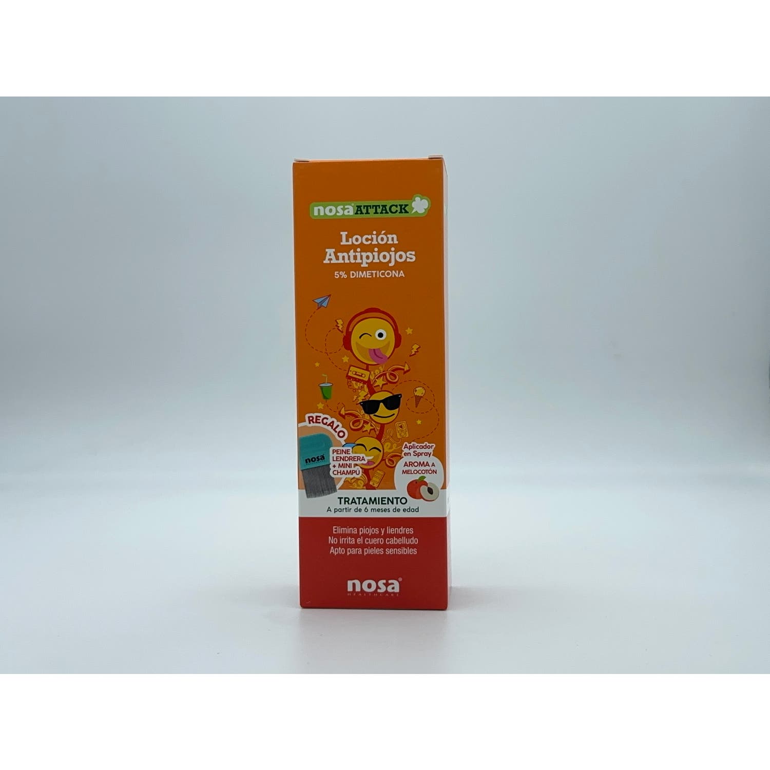 Nosa Loción Antipiojos 5% Dimeticona aroma Melocotón 100ml es una loción antipiojos sin insecticida. Además, facilita el peinado sin tirones. Con aroma a melocotón.