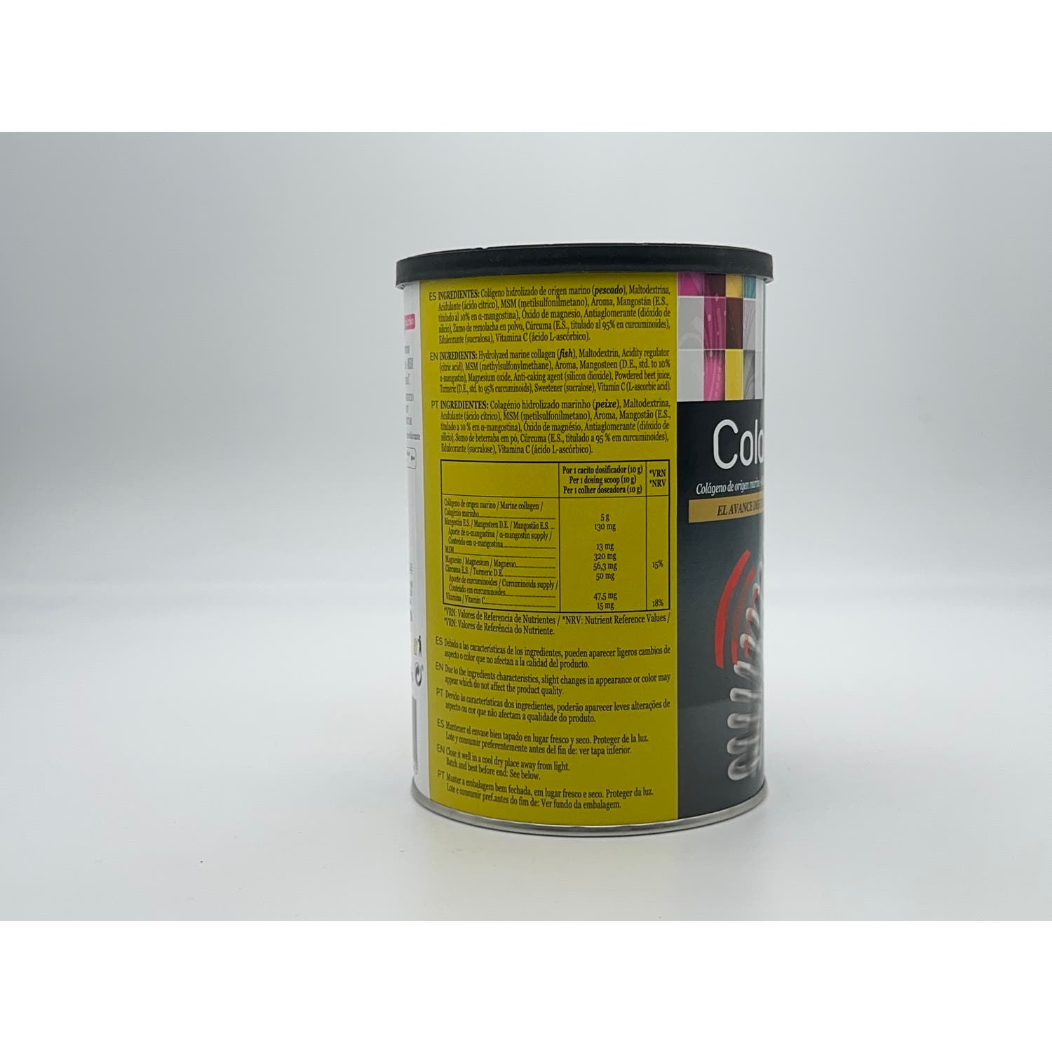 Colágeno hidrolizado de origen marino (pescado), Maltodextrina, Acidulante (ácido cítrico), MSM (metilsulfonilmetano), Aroma, Mangostán (E.S., titulado al 10% en α-mangostina), Óxido de magnesio, Antiaglomerante (dióxido de silicio), Zumo de remolacha en polvo, Cúrcuma (E.S. titulado al 82% en curcumina), Edulcorante (sucralosa), Vitamina C (ácido L-ascórbico).