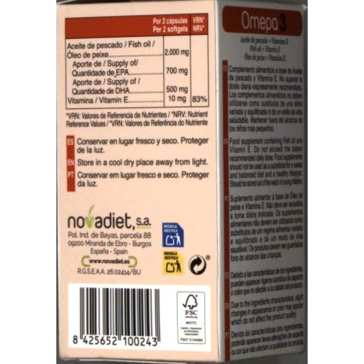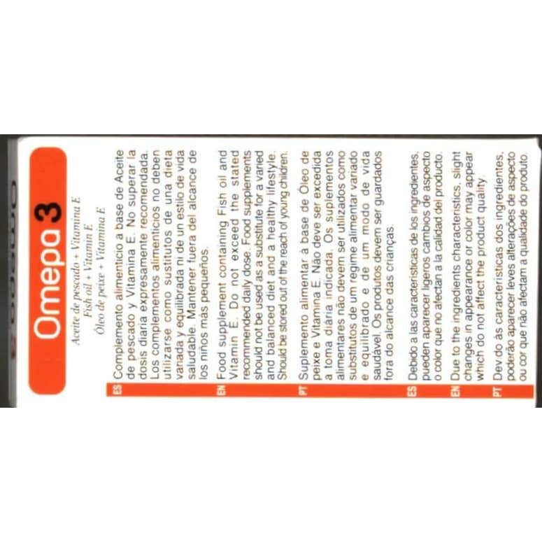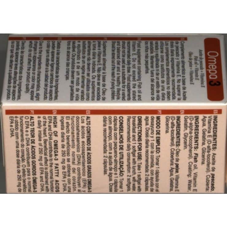Aceite de Pescado, Vitamina E (D-alfa-tocoferol). Cubierta: Agua, Gelatina, Glicerina.