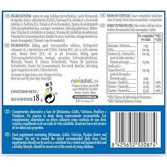Complemento alimenticio en cápsulas a base de Melatonina, GABA, Valeriana, Pasiflora y Vitaminas que es eficaz para el insomnio inicial y en el de mantenimiento.
