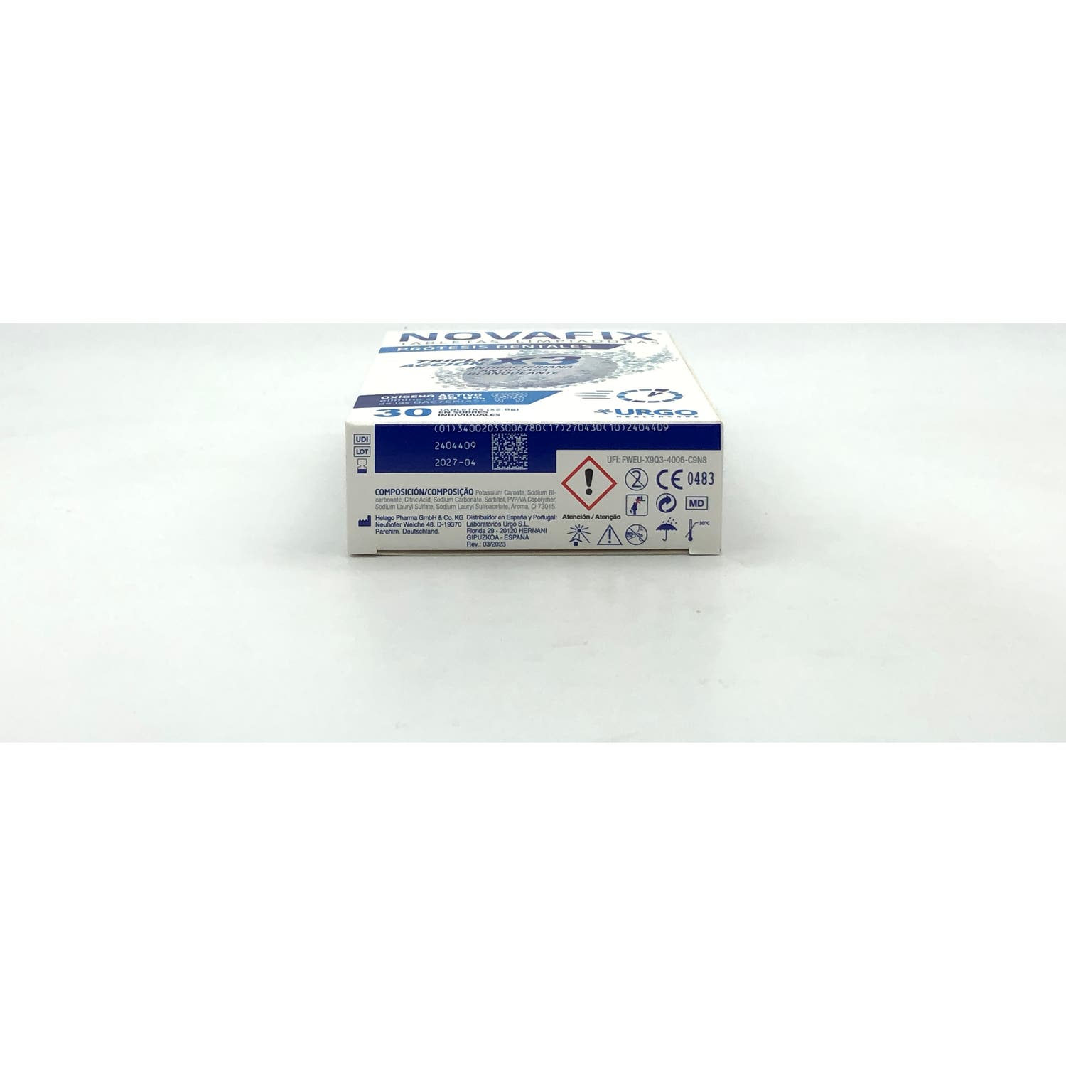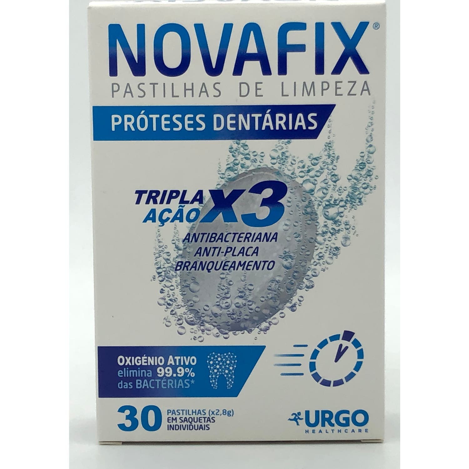 Novafix Tabletas Limpiadoras Antibacterianas 30uds son unas pastillas efervescentes formuladas con oxígeno activo. Su composición tiene propiedades antibacterianas y blanqueantes que ayudan a mantener la higiene óptima de las prótesis dentales.