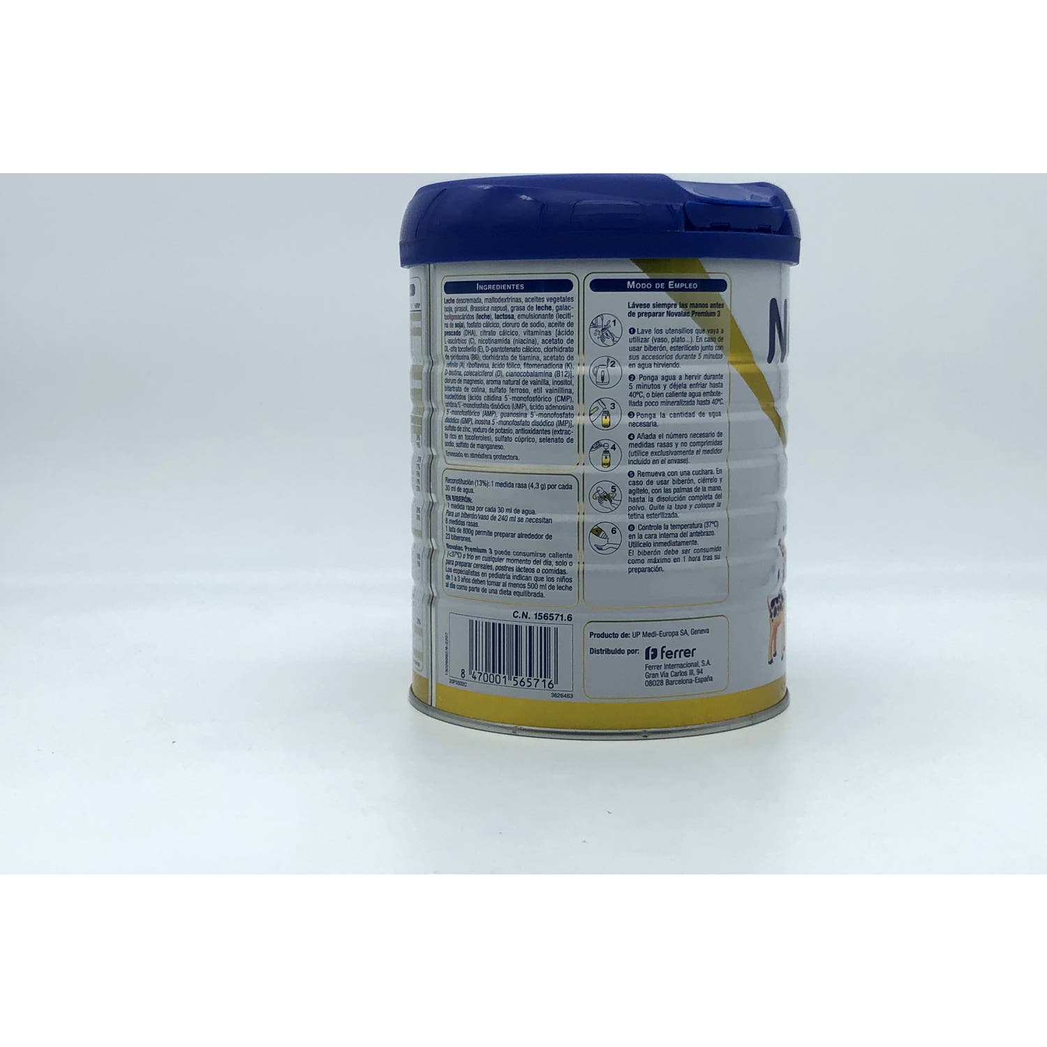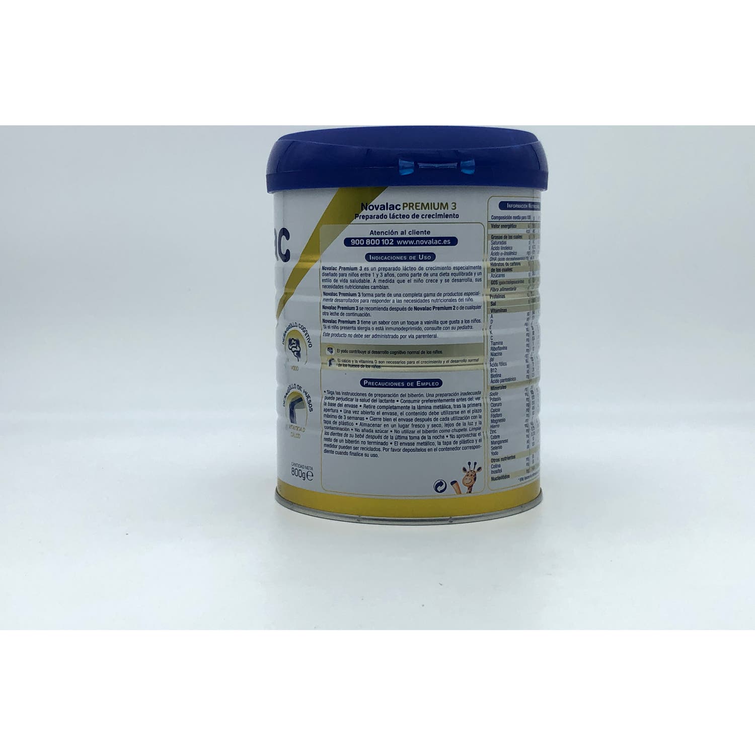 Novalac Premium 3 +12m 800g es una leche aporta la mitad de la dosis diaria recomendada de Hierro, el 100% de la cantidad diaria recomendada de Vitamina D y de Calcio.