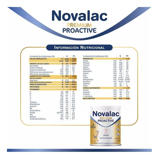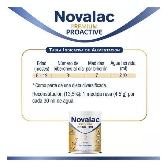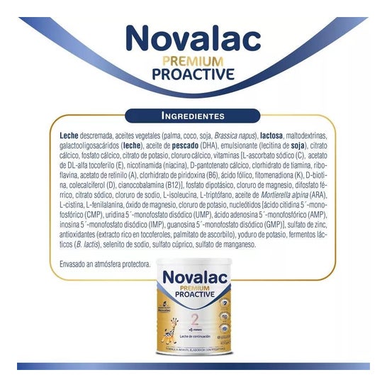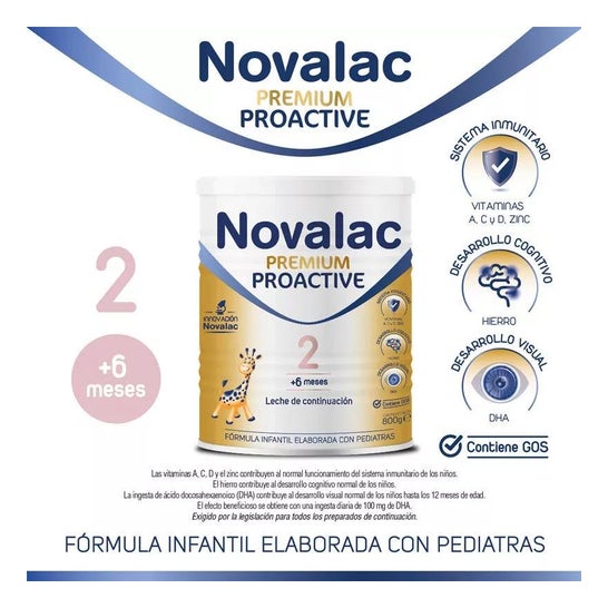 Novalac Premium Proactive 2 800g es un preparado lácteo de crecimiento para bebés de 6 a 12 meses.