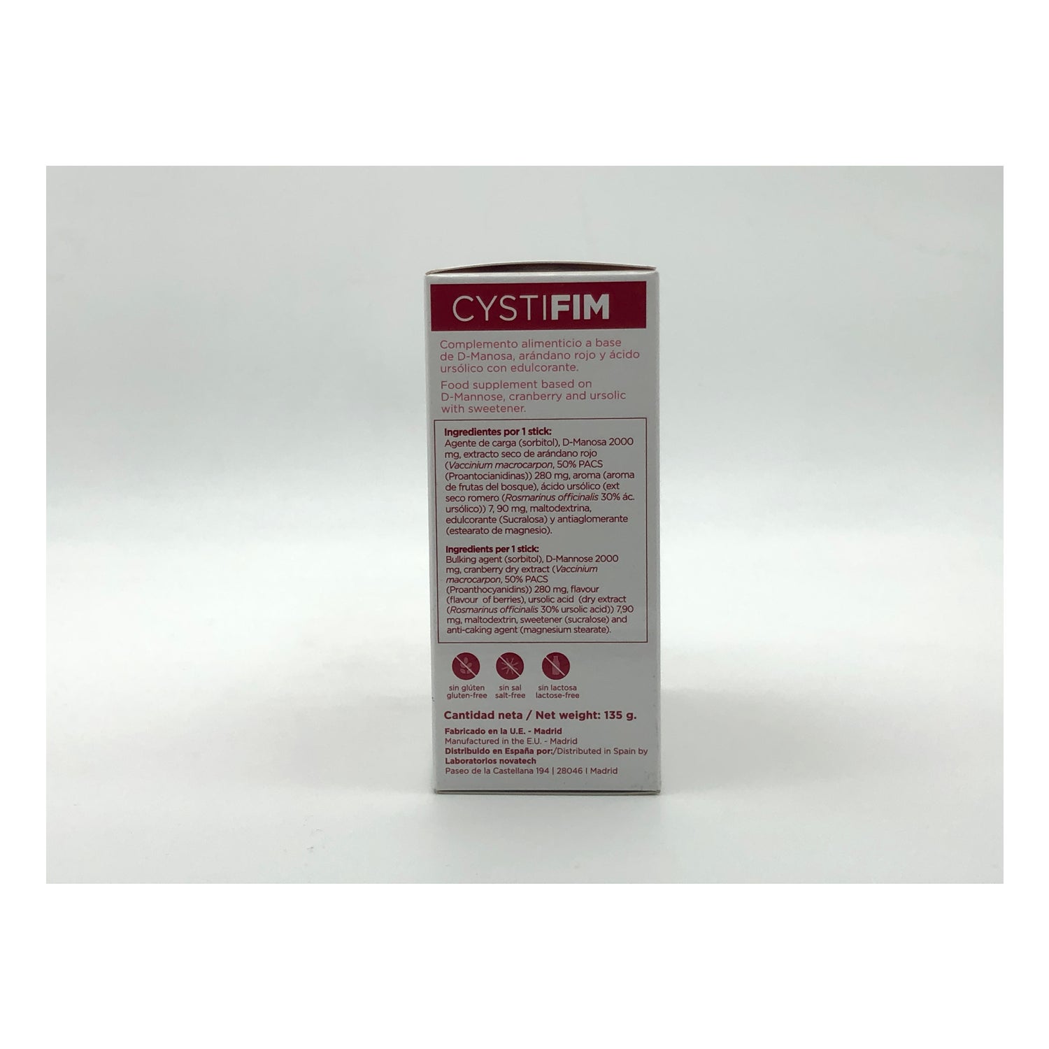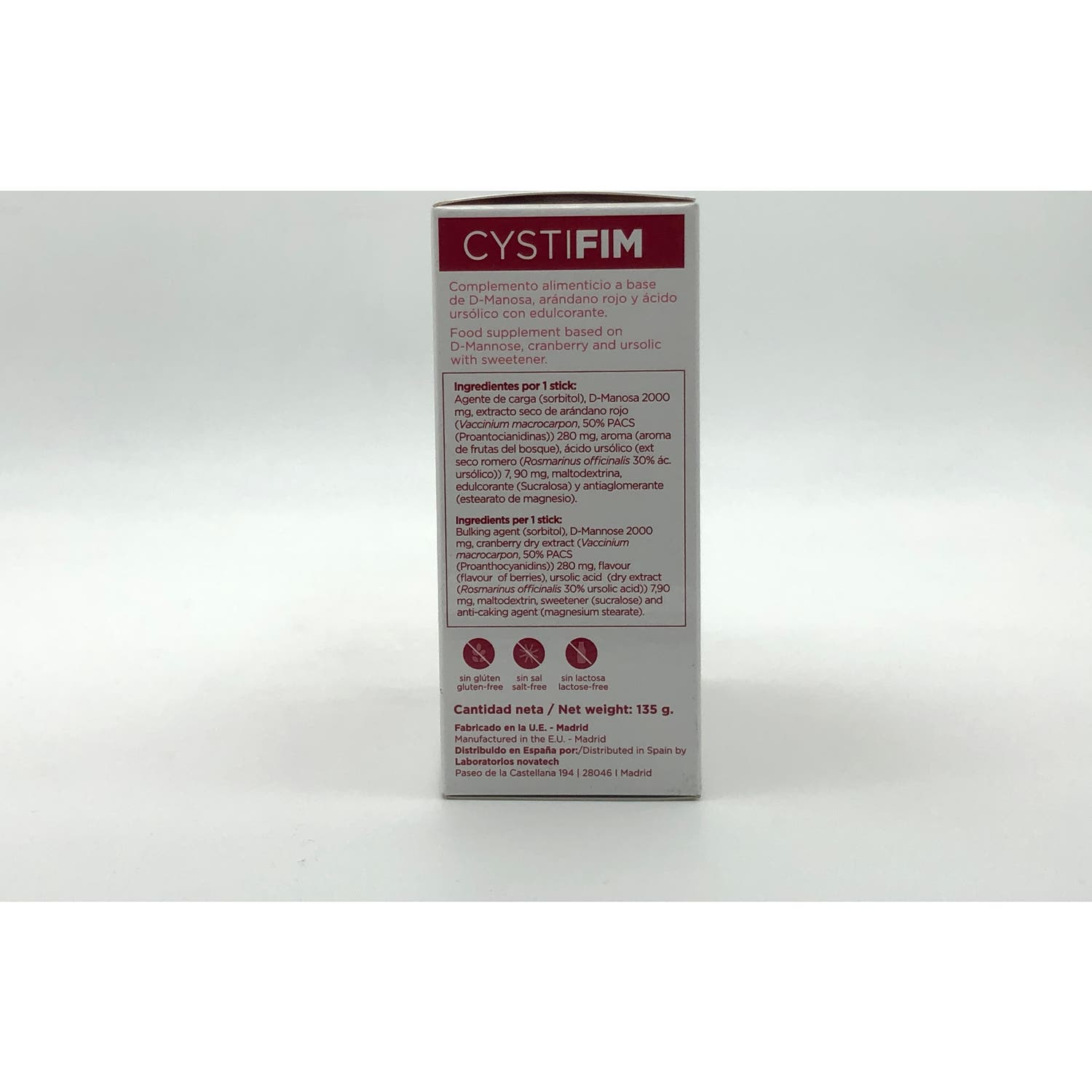 Complemento alimenticio fabricado por los laboratorios Novatech. Sobres con sabor a frutos rojos. Estos sobres tienen como objetivo hacer frente a los microorganismos causantes de las infecciones en el tracto urinario (ITU), contribuyendo a mejorar los síntomas y tratar la infección presente.