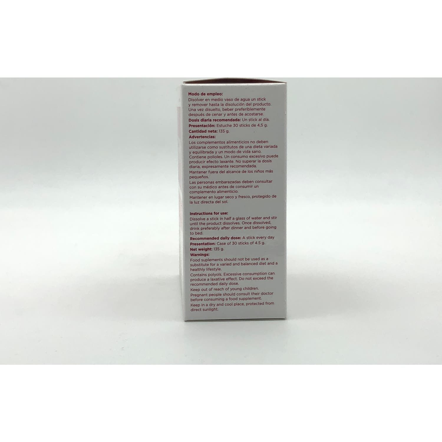 Se recomienda no exceder la dosis diaria. Este producto debe mantenerse fuera del alcance de niños y mascotas y almacenado en un lugar fresco, seco y protegido de la luz del sol.