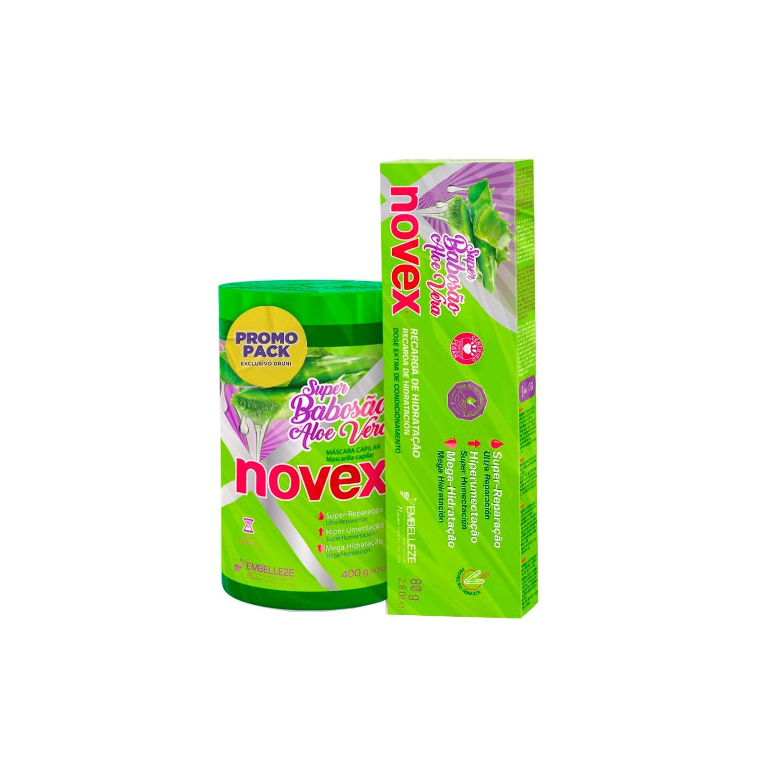 Novex Super Babosão Aloe Vera Pack es un conjunto diseñado para el cuidado del cabello que incluye dos productos destacados.