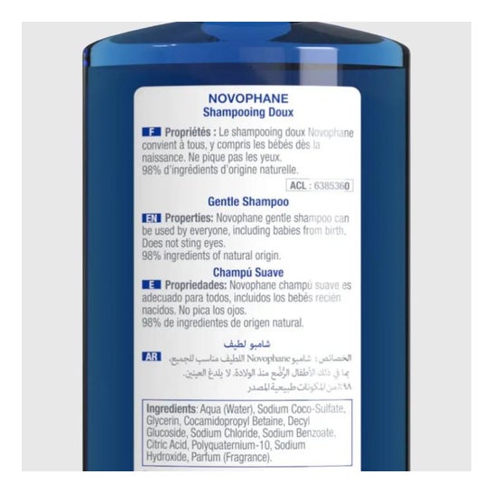 Novophane Champú Suave 500ml es un producto diseñado para proporcionar una limpieza delicada tanto al cabello como al cuero cabelludo de toda la familia, incluyendo a los bebés desde su nacimiento. Este champú se caracteriza por su fórmula concisa, compuesta por solo 11 ingredientes, de los cuales el 98% son de origen natural.