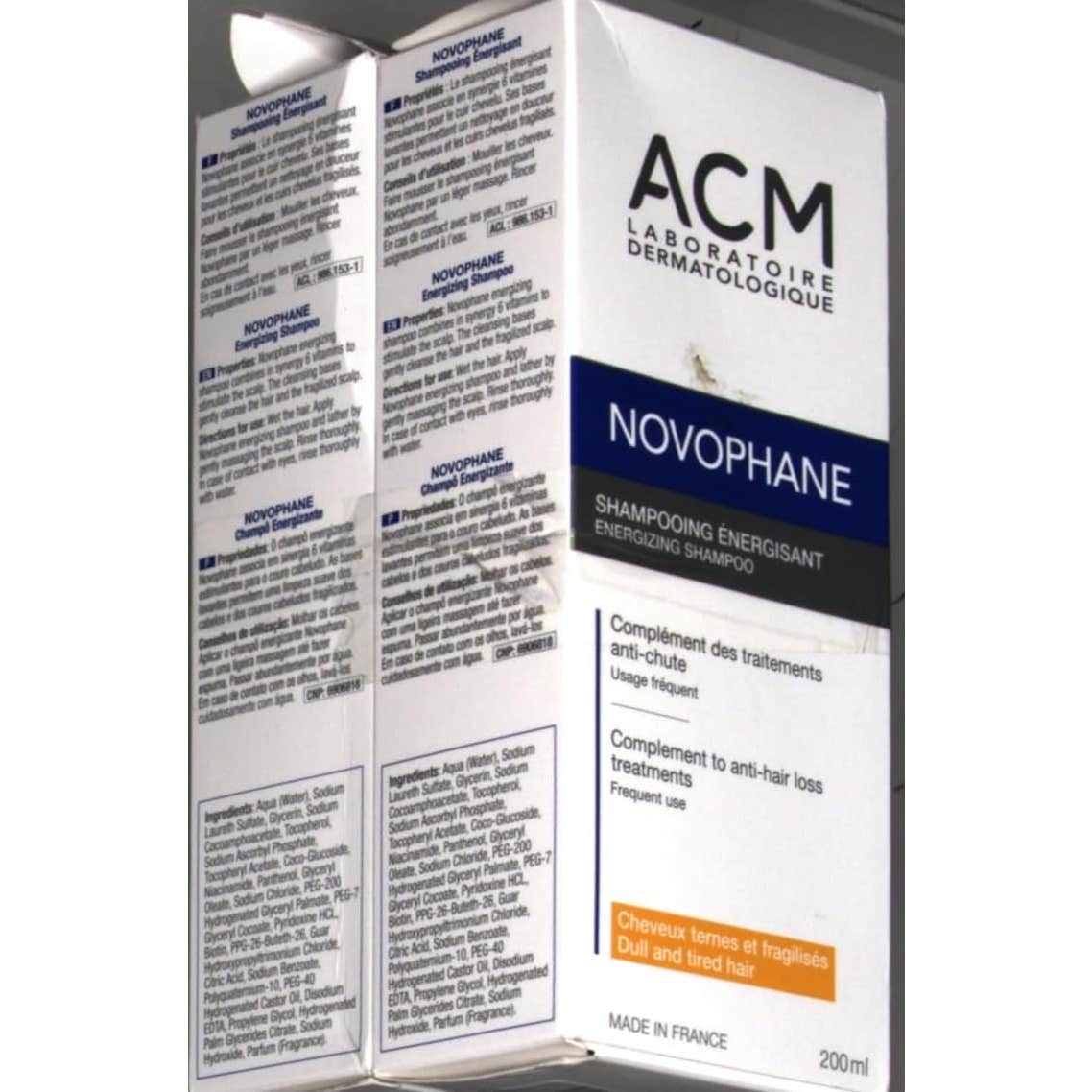 El Champú Energizante Novophane ACM 200ml es un producto que combina 6 vitaminas estimulantes (Vit. B5-B6-C-E-PP y BIOTINA) para el cuero cabelludo. Sus ingredientes de limpieza suave son ideales para cabellos y cueros cabelludos frágiles.