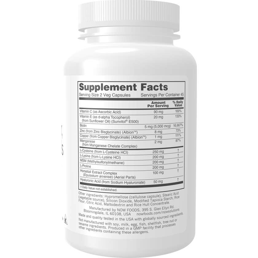 Now Vegan Hair Skin And Nails 90 cápsulas es un suplemento diseñado para promover la salud y vitalidad del cabello, las uñas y la piel. Este producto se centra en el bienestar del tejido conjuntivo, que desempeña un papel fundamental en proporcionar soporte estructural a estas partes del cuerpo.