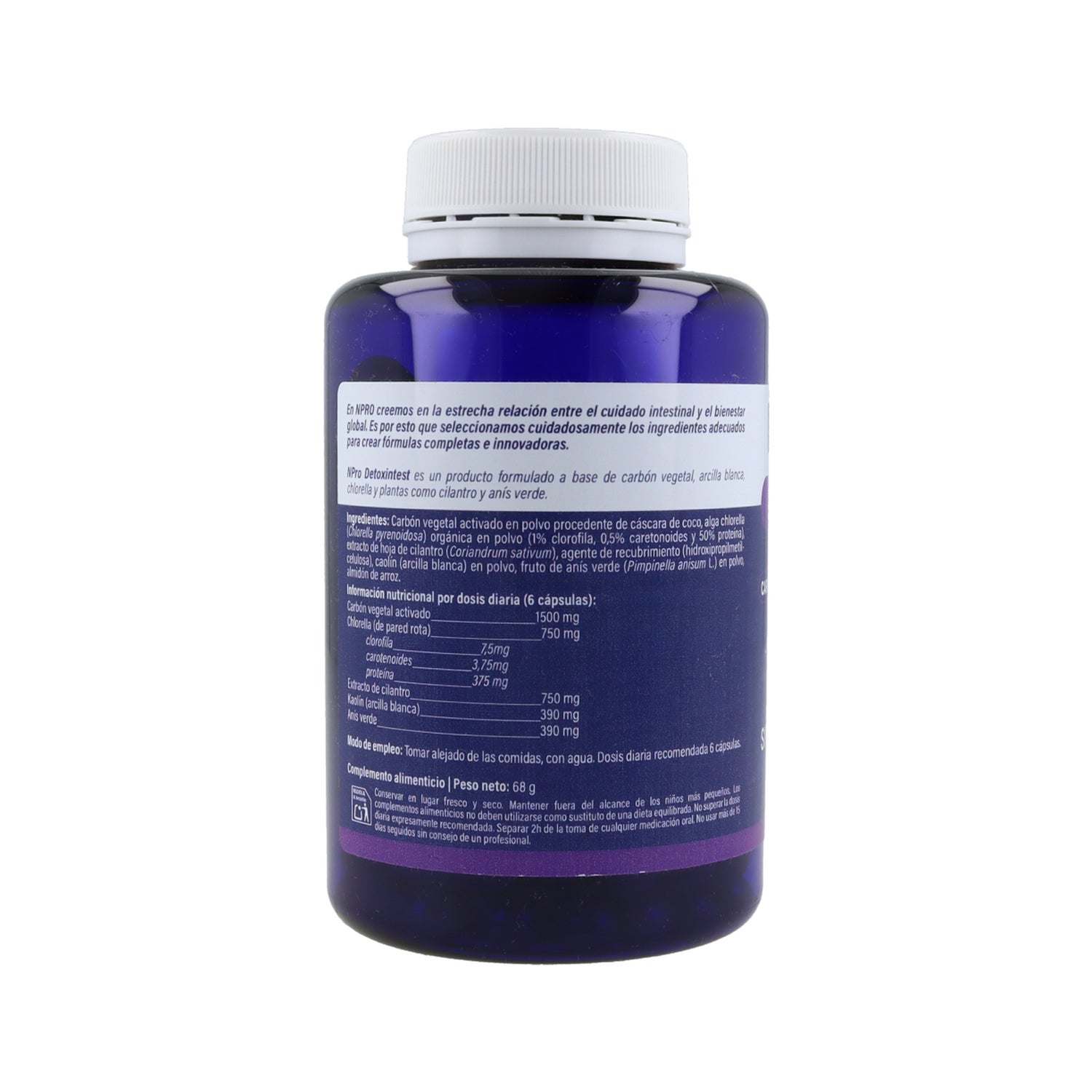 Npro Detoxintest 90caps es un complemento alimenticio que actúa como coadyuvante para favorecer las digestiones y reducir los gases.