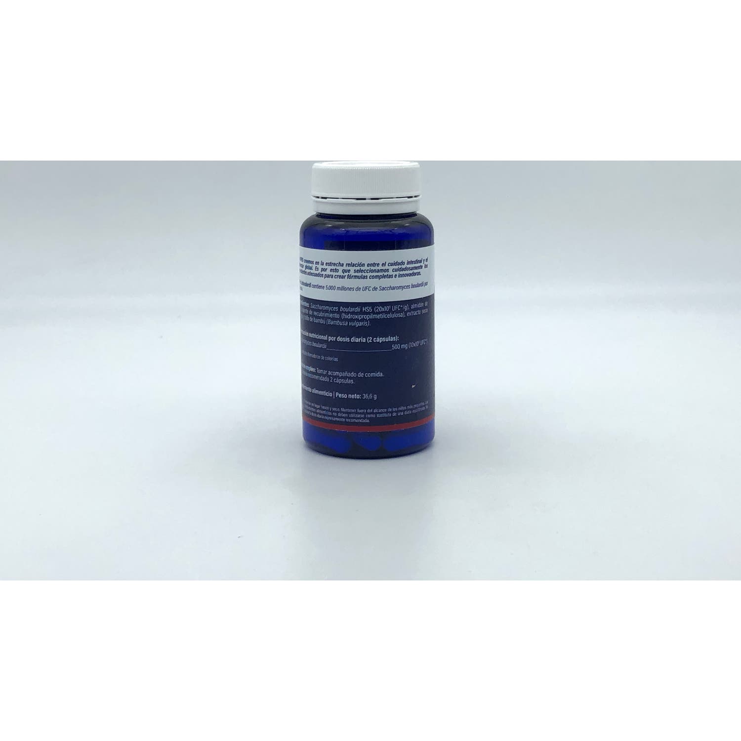 Complemento alimenticio en cápsulas a base de levadura probiótica. Favorece el equilibrio de la microbiota intestinal y contribuye a reforzar las defensas naturales del organismo.