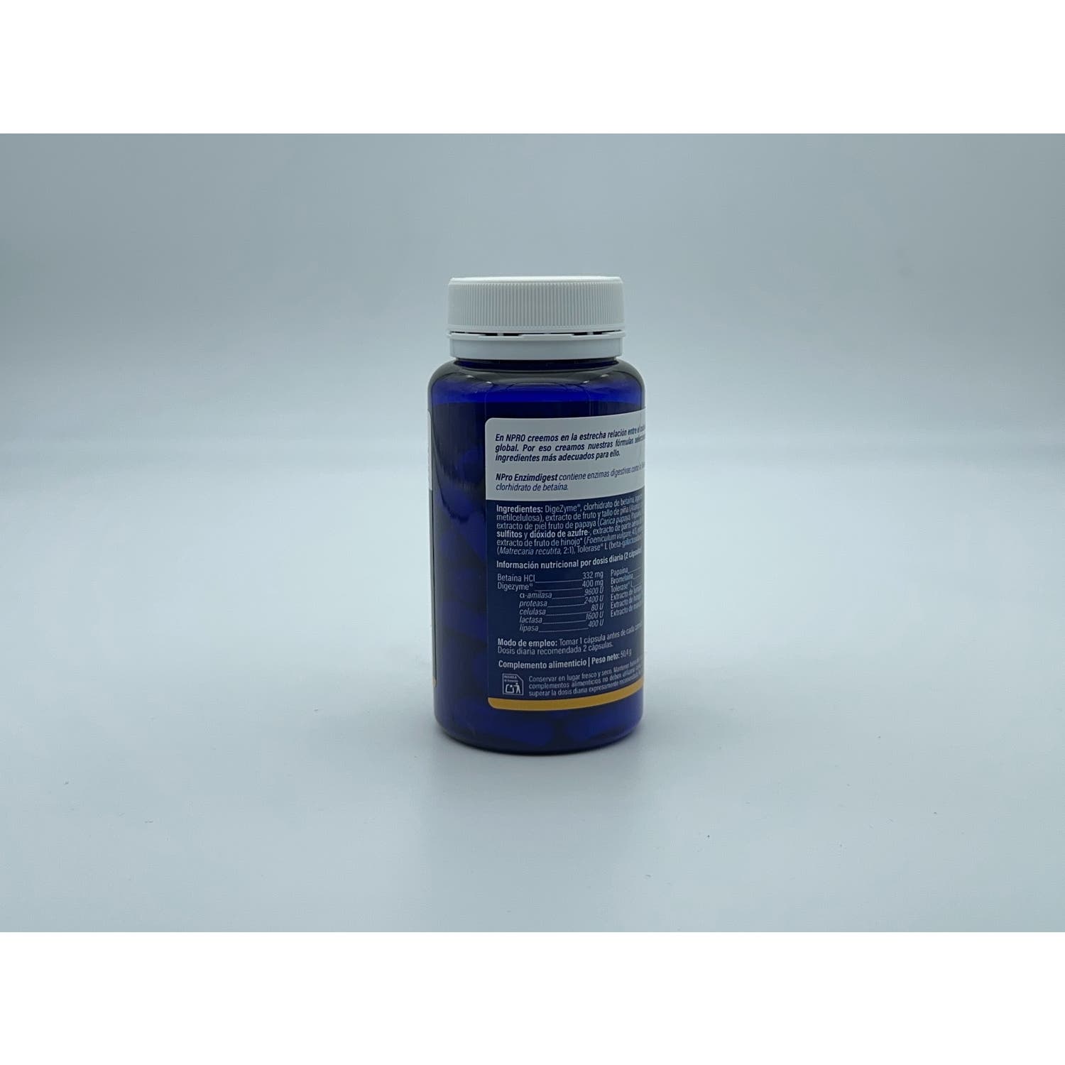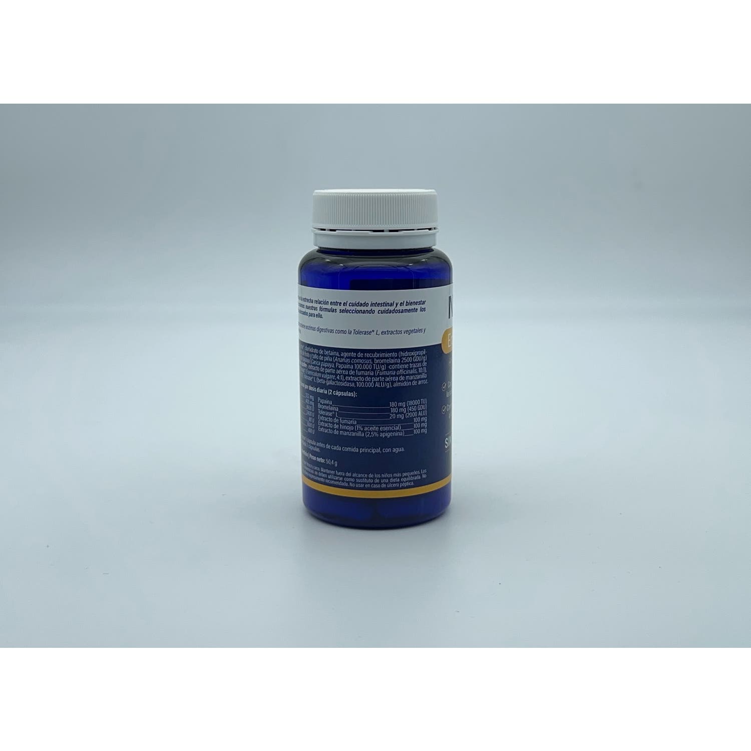 Complemento alimenticio en forma de cápsulas, elaborado a base de enzimas de procedencia vegetal y fermentativa, que favorecen la correcta asimilación de carbohidratos, grasas y proteínas, ayudando a mejorar la salud del sistema digestivo.