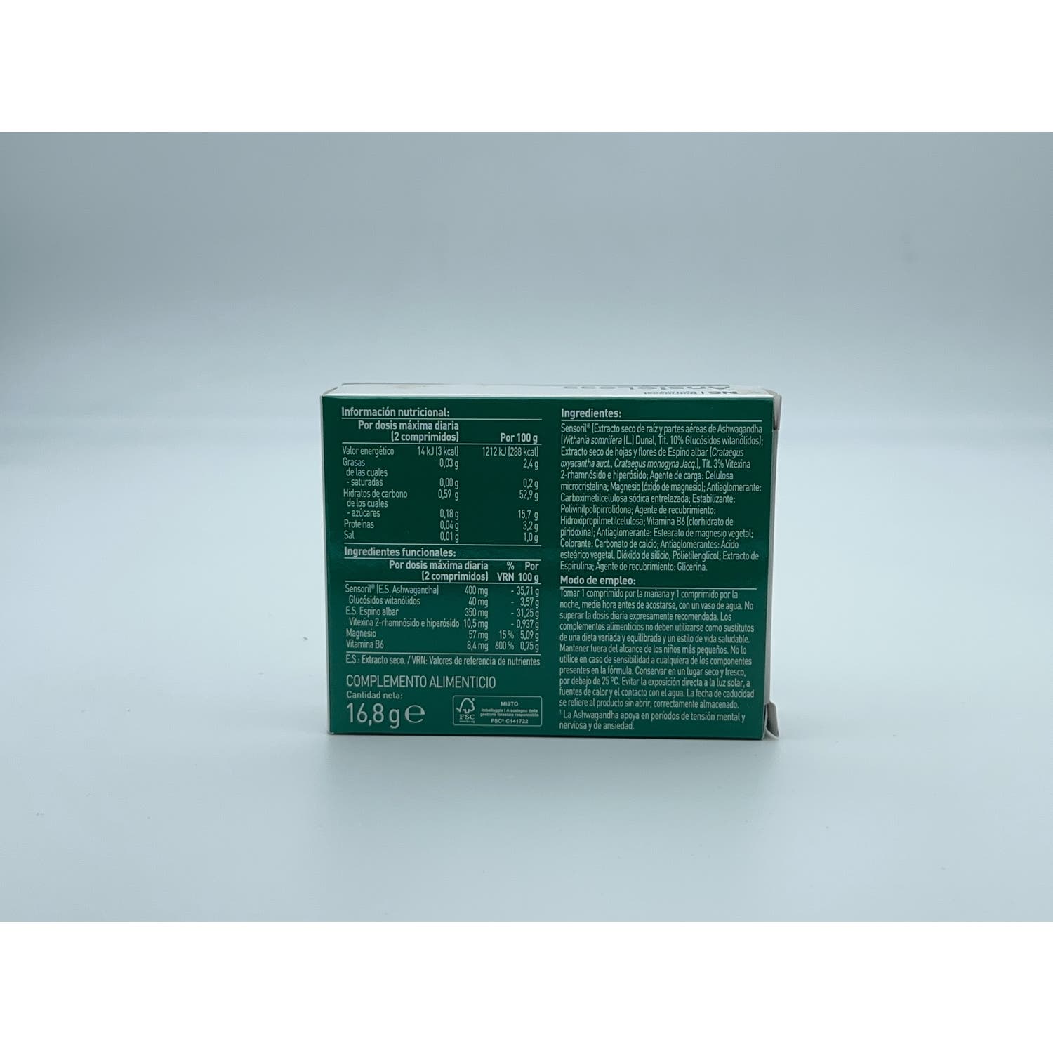 Por cantidad máxima diaria: Sensoril® (E.S. Ashwagandha) 400 mg, Glucósidos witanólidos 40 mg, E.S. Espino albar 350 mg, Vitexina 2-rhamnósido e hiperósido 10,5 mg, Magnesio 57 mg 15 %, Vitamina B6 8,4 mg 600 %.