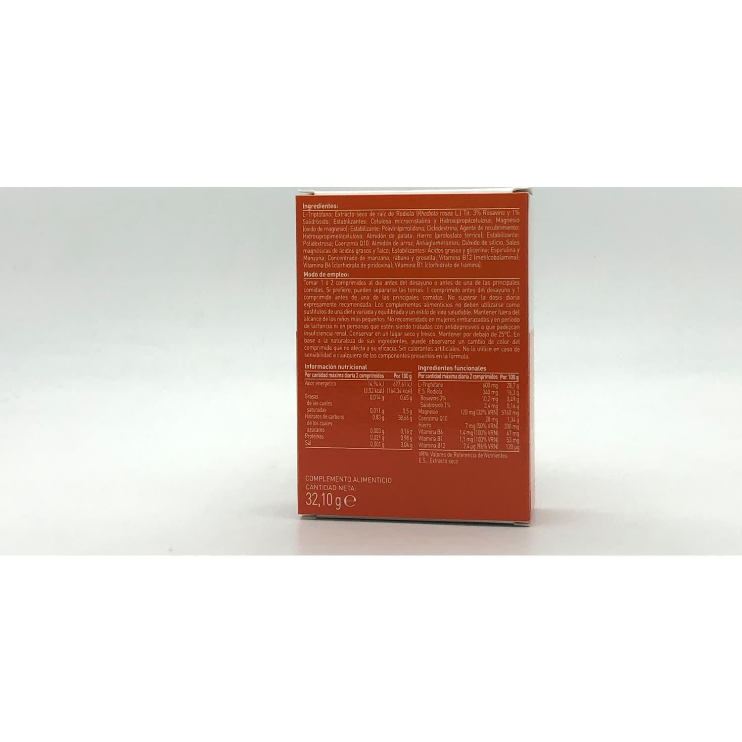 Complemento alimenticio elaborado a base de triptófano y extracto seco de rhodiola, desarrollado para contribuir al bienestar físico y mental.
