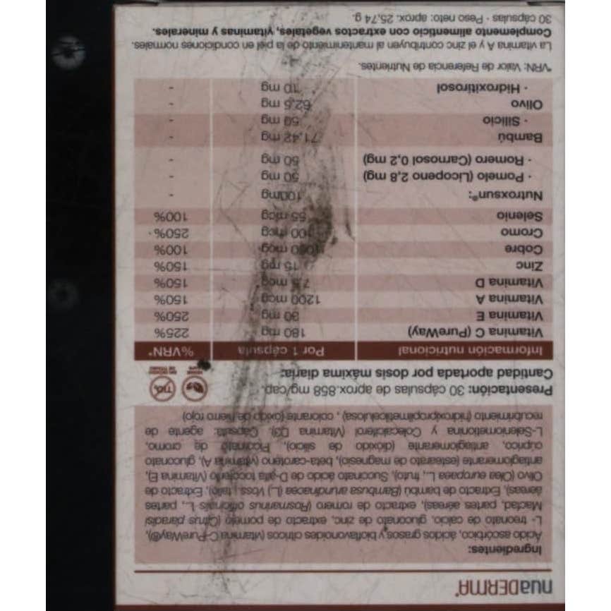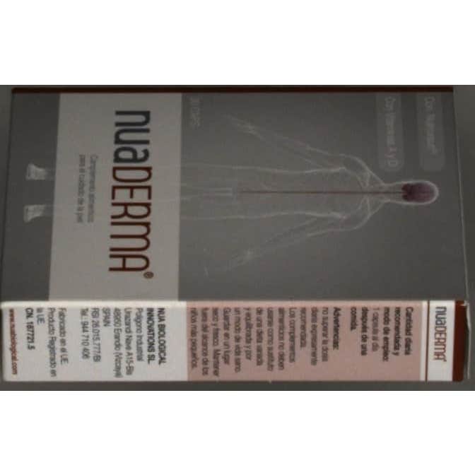 NuaDerma 30caps es un complemento alimenticio orientado a proteger la piel del envejecimiento debido al paso del tiempo y el sol (cronoenvejecimiento y fotoenvejecimiento). Su acción es antioxidante, fotoprotectora cutánea natural y nutre la piel, contribuyendo a reforzar su firmeza y elasticidad.