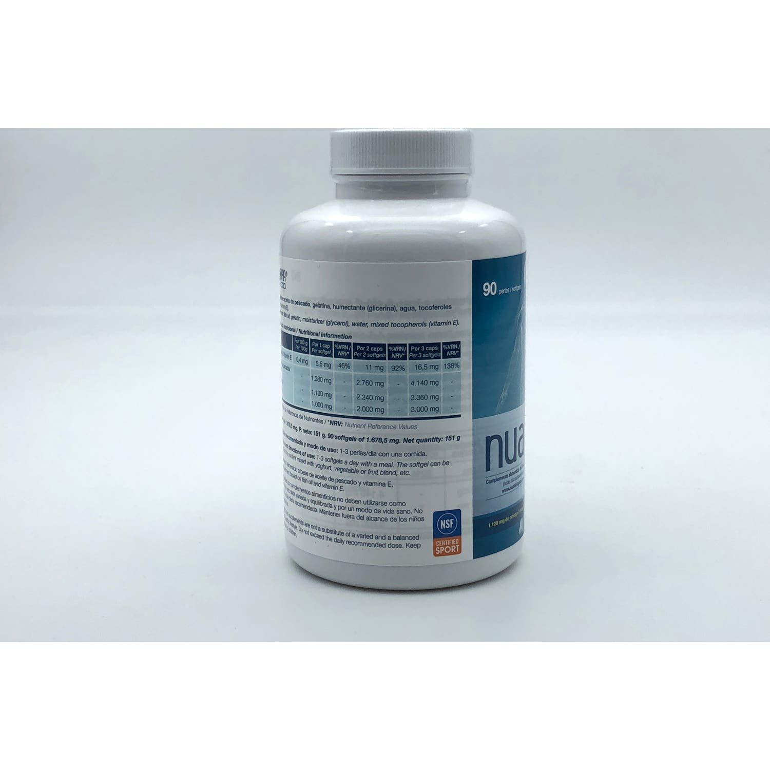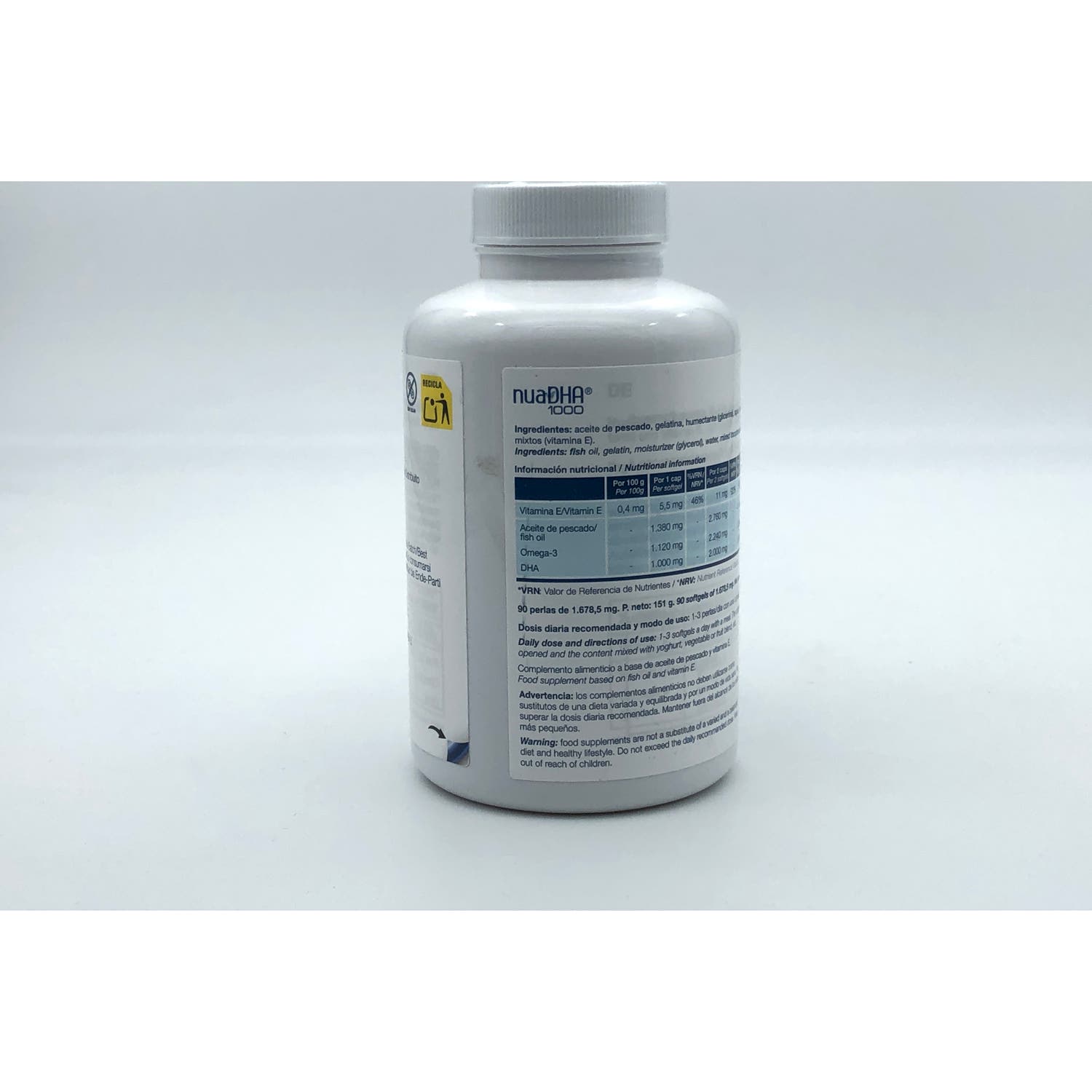 NuaDHA 1000 90 perlas es un complemento alimenticio en forma de perlas blandas, elaborado a base de ácidos grasos omega 3 procedentes de aceite de pescado purificado, con un alto contenido en DHA, además de vitamina E, que contribuye a mejorar el rendimiento cognitivo y a regular los niveles de colesterol.
