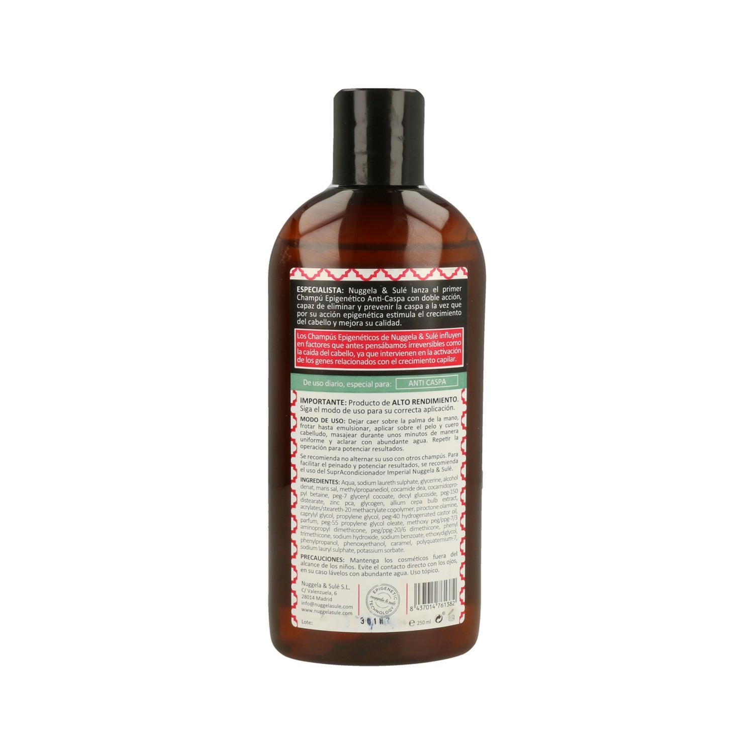 Nuggela & Sulé Champú Anti-caspa 250ml es un champú que tiene una innovación capilar ya que interviene en la activación de los genes relacionados con el crecimiento capilar. Con olor a heno y limón.