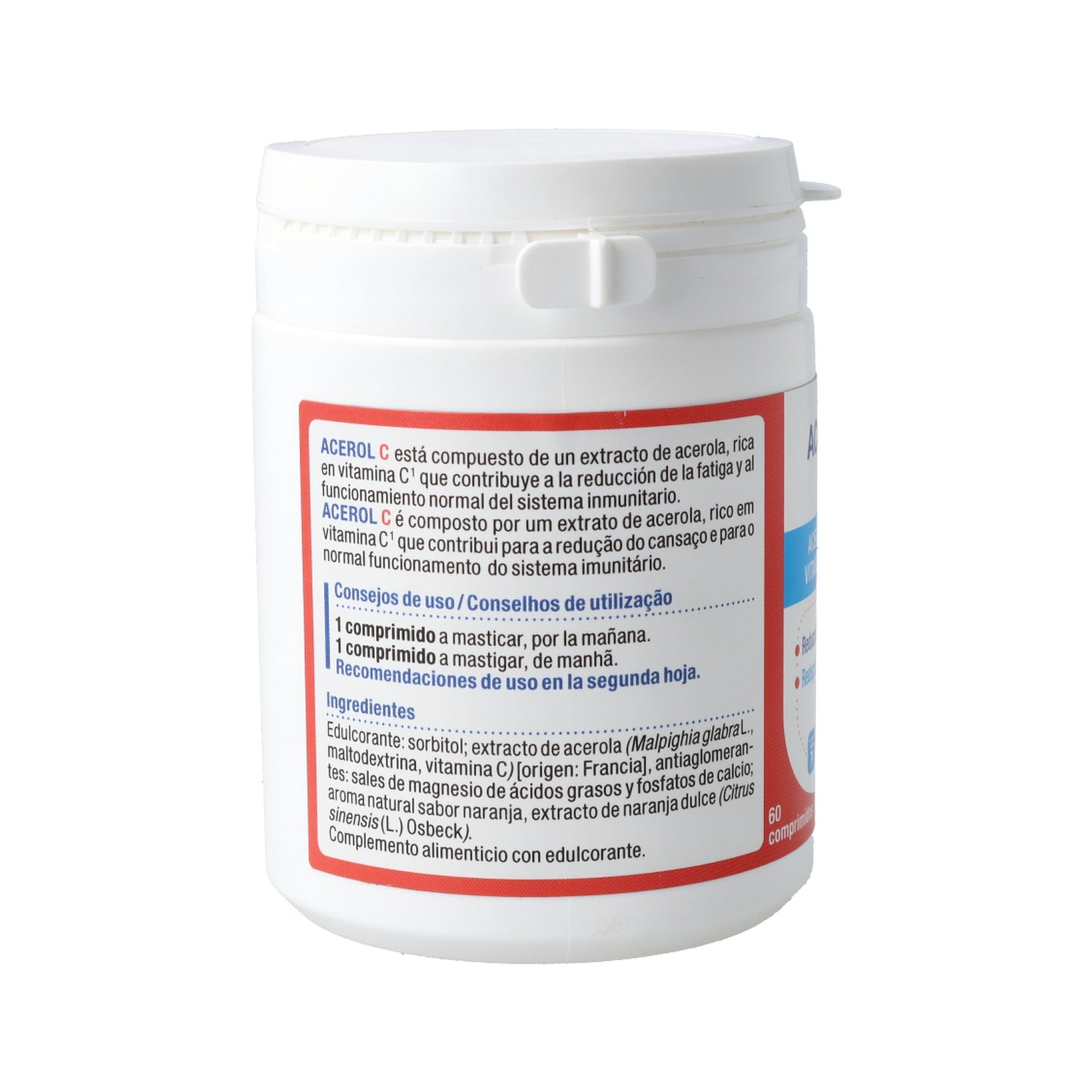 Comprimidos elaborados a base de extracto de acerola, extracto de limón y magnesio que retrasan la aparición de los signos de la fatiga y el cansancio, tanto físico como mental. Es una fuente rica en vitamina C, que favorece la absorción de hierro por el organismo y participa en el metabolismo energético.