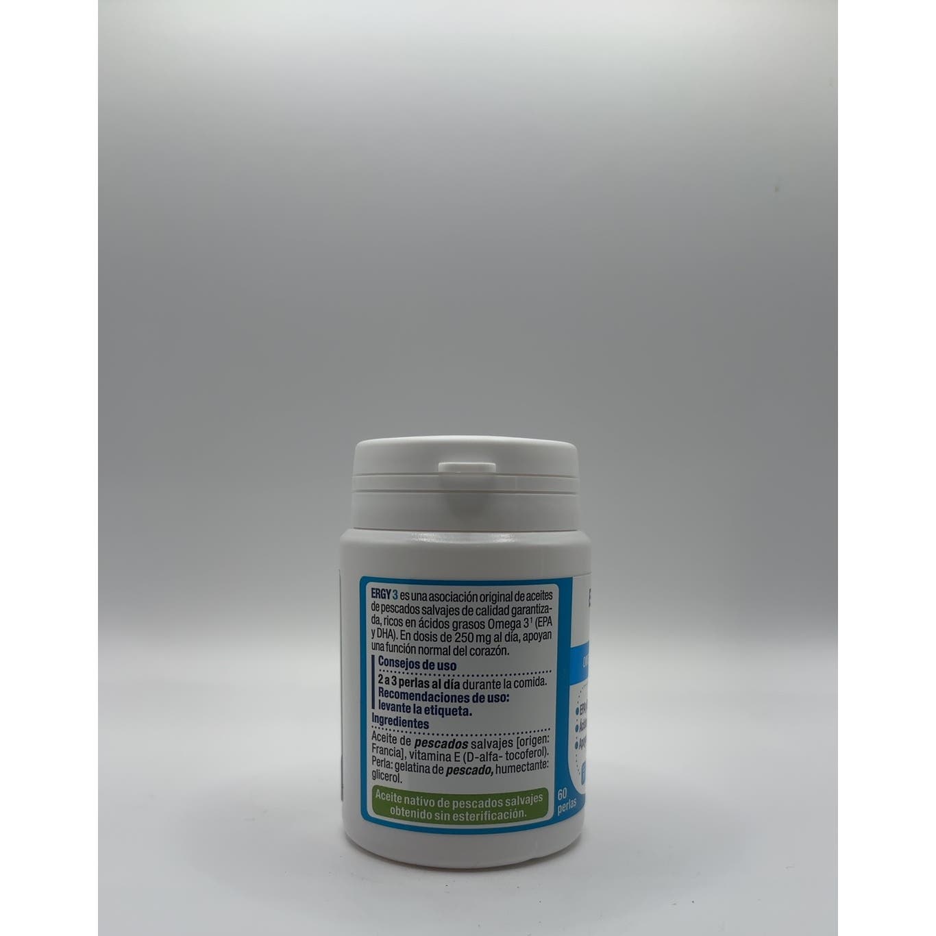 Complemento alimenticio a base de ERGY-3, Omega 3, que contribuye a regular y controlar los niveles de colesterol y a tener un buen mantenimiento de la presión sanguínea.
