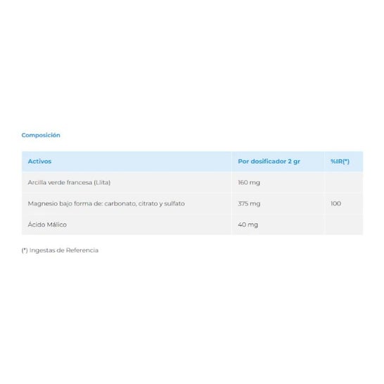 Formulado a base de sales de magnesio en sus diferentes formas, junto con arcilla y ácido málico.