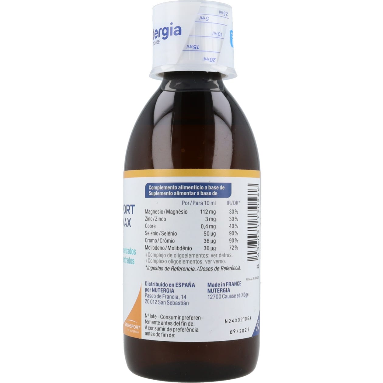 Rico en cobre y zinc, que contribuyen respectivamente al transporte del hierro y al metabolismo ácido-base. El manganeso y el cobre intervienen en el metabolismo energético, mientras que el zinc y el cromo participan en el metabolismo de los macronutrientes. El zinc contribuye a la síntesis de proteínas y al funcionamiento del sistema inmunitario. El magnesio favorece la función muscular y ayuda a reducir la fatiga. INFORMACIÓNEl complemento alimenticio Nutergia ergysport oligomax es una combinación de oligoelementos y minerales que contribuye al bienestar del organismo del deportista y, sobre todo, a compensar las pérdidas de minerales (sudor, orina, estrés, etc.).