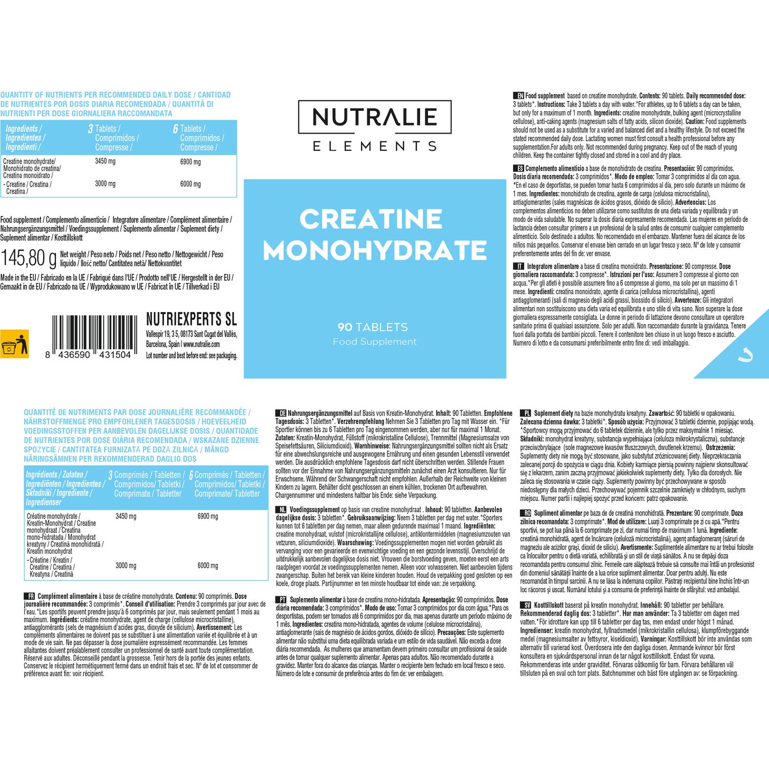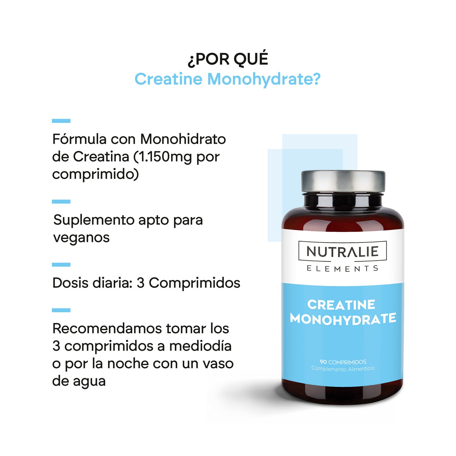 La Creatina Elements de Nutralie es un complemento alimenticio formulado a base 6900mg de Creatina Monohidratada de los cuáles 6000mg son de creatina. Está pensada para mejorar el efecto del entrenamiento tanto en deportistas más experimentados o en aficionados para sentirte imparable ya que la Creatina mejora el rendimiento físico en series sucesivas de ejercicios breves de alta intensidad. La dosis diária es de 3 comprimidos al día con agua y en caso de deportistas se pueden tomar hasta 6 comprimidos al día. Recomendamos que se tomen al mediodía o por la noche Declaraciones alimentarias respaldadas por la EFSA (Autoridad Europea de Seguridad Alimentaria)