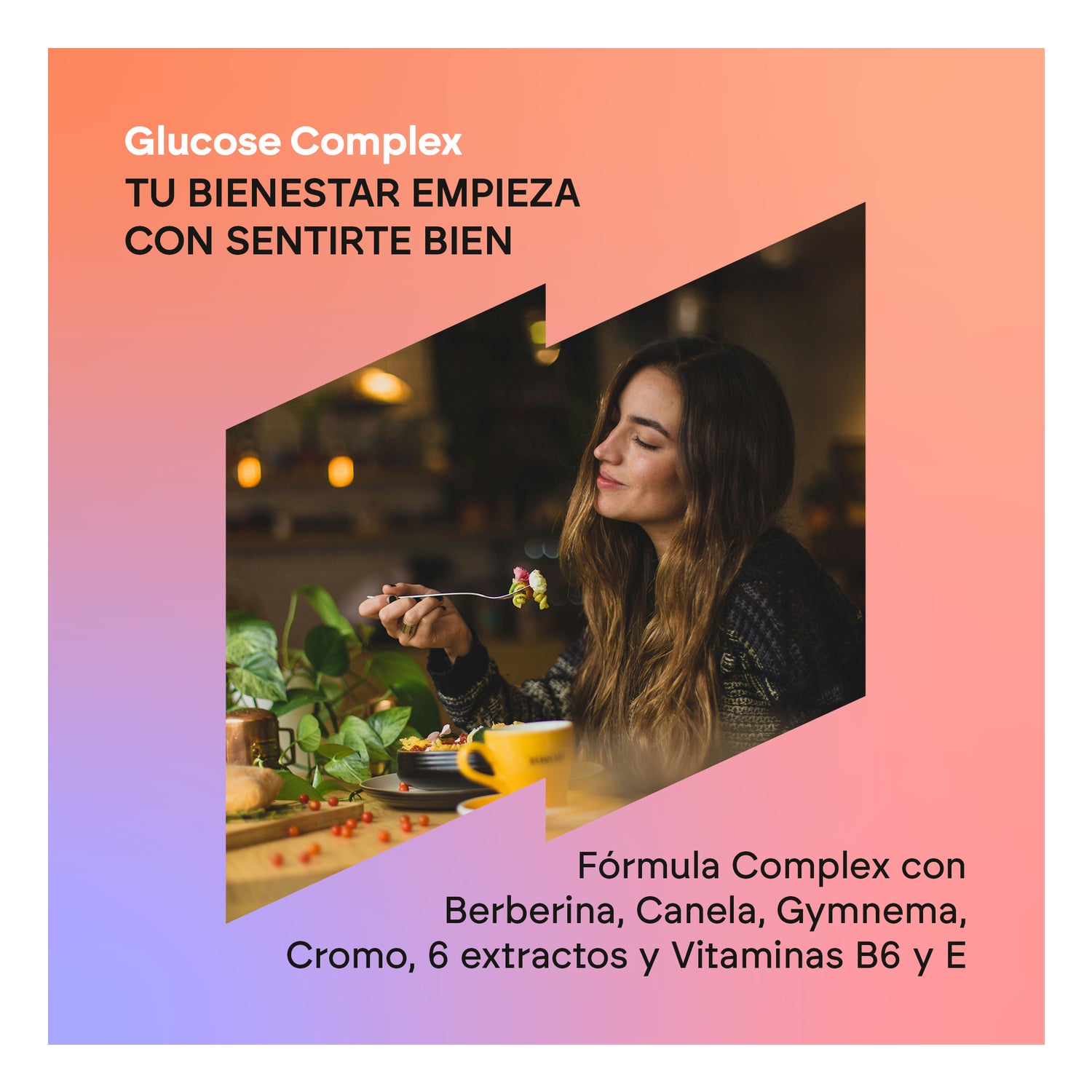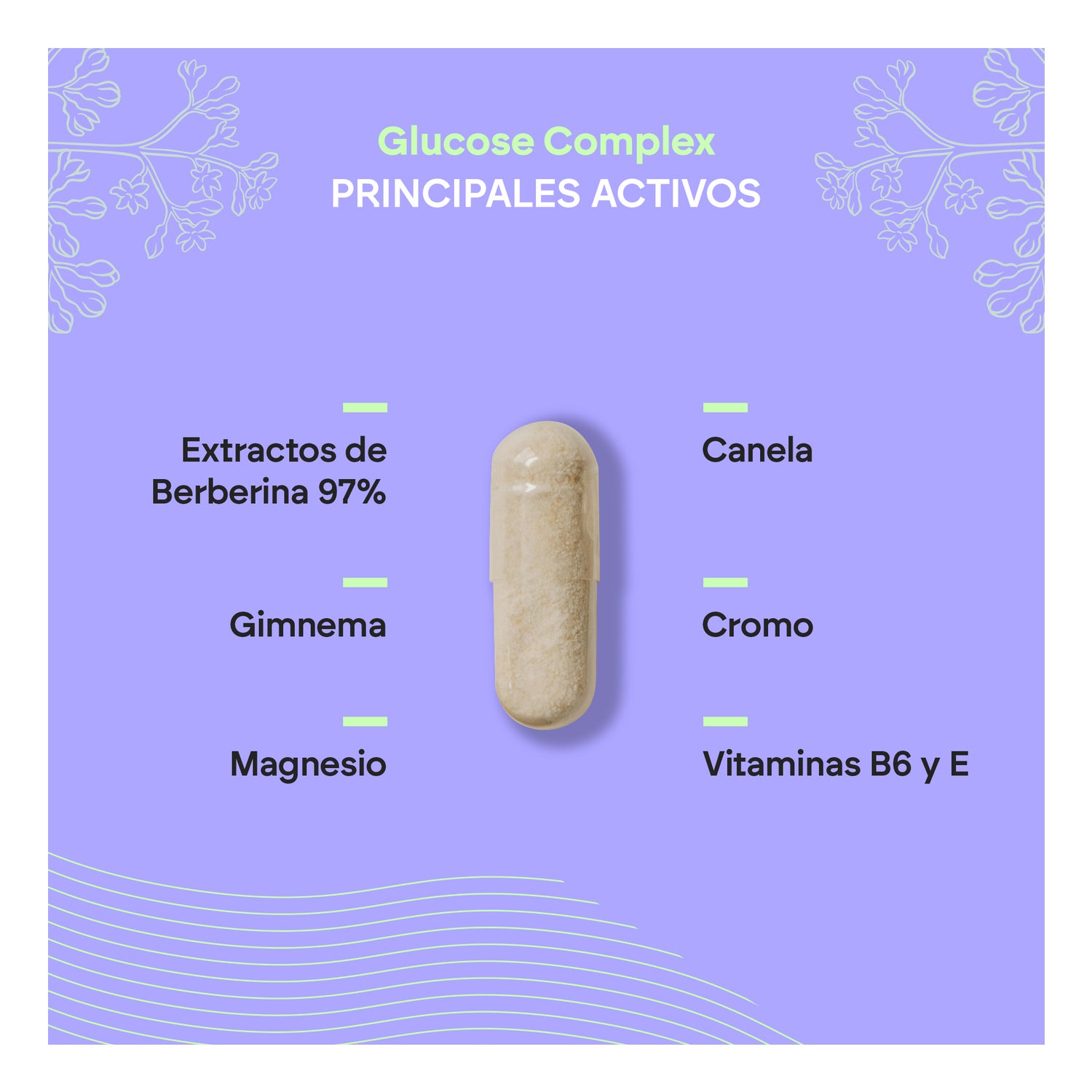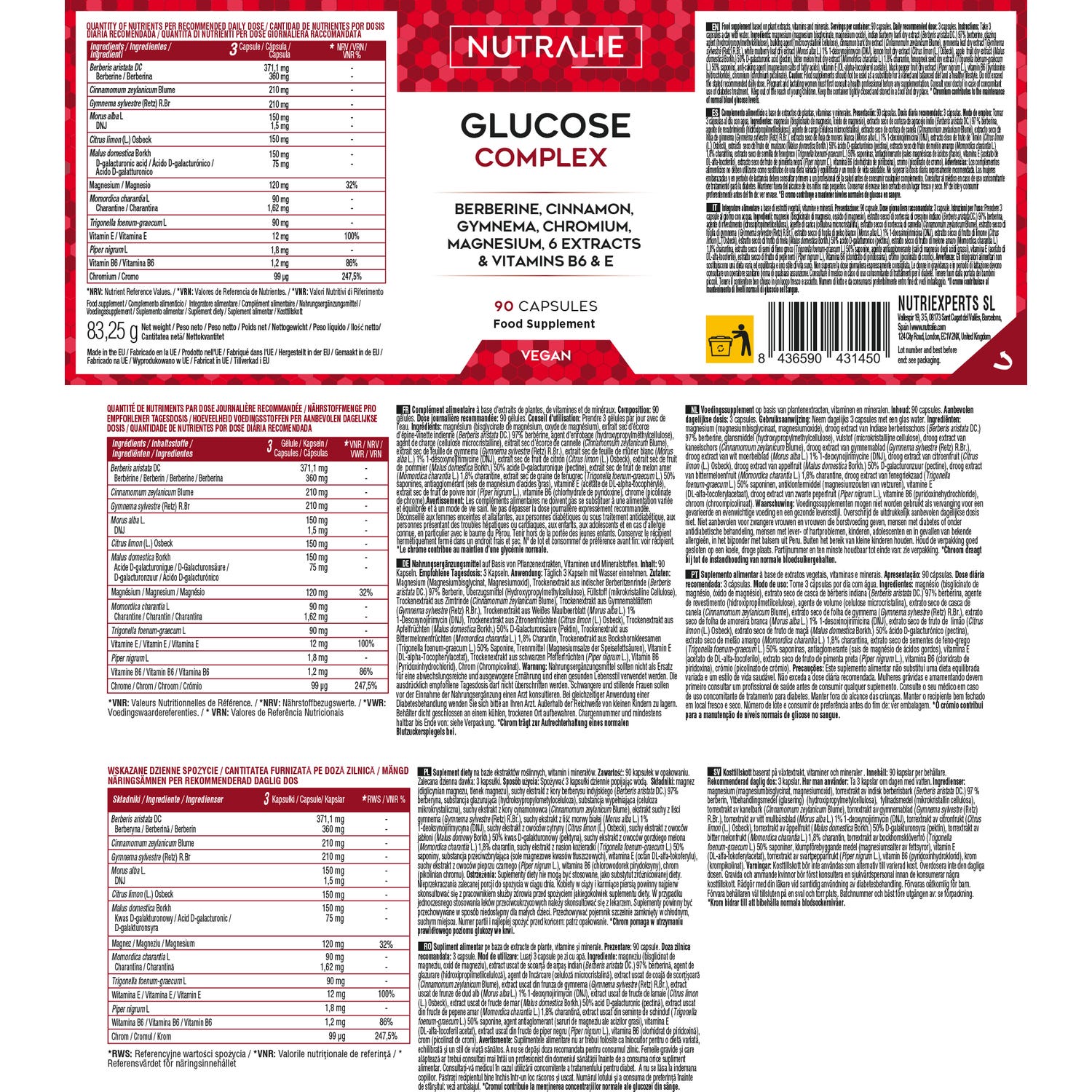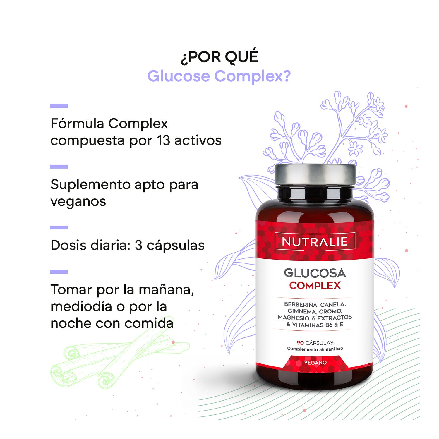Nutralie Glucosa Complex es un complemento alimenticio de 2000mg formulado a base de Berberina, Canela, Cromo y Vitaminas E y B6. El cromo contribuye al mantenimiento de los niveles de glucosa en sangre. Por otro lado, la Berberina y la Canela actúan en sinergia para potenciar su efectividad, maximizando sus beneficios y asegurando una acción óptima en el organismo. La fórmula se convierte en premium al añadir las Vitaminas B6 que contribuye al metabolismo normal de las proteínas del Glucógeno y la Vitamina E para proteger las células del daño oxidativo.