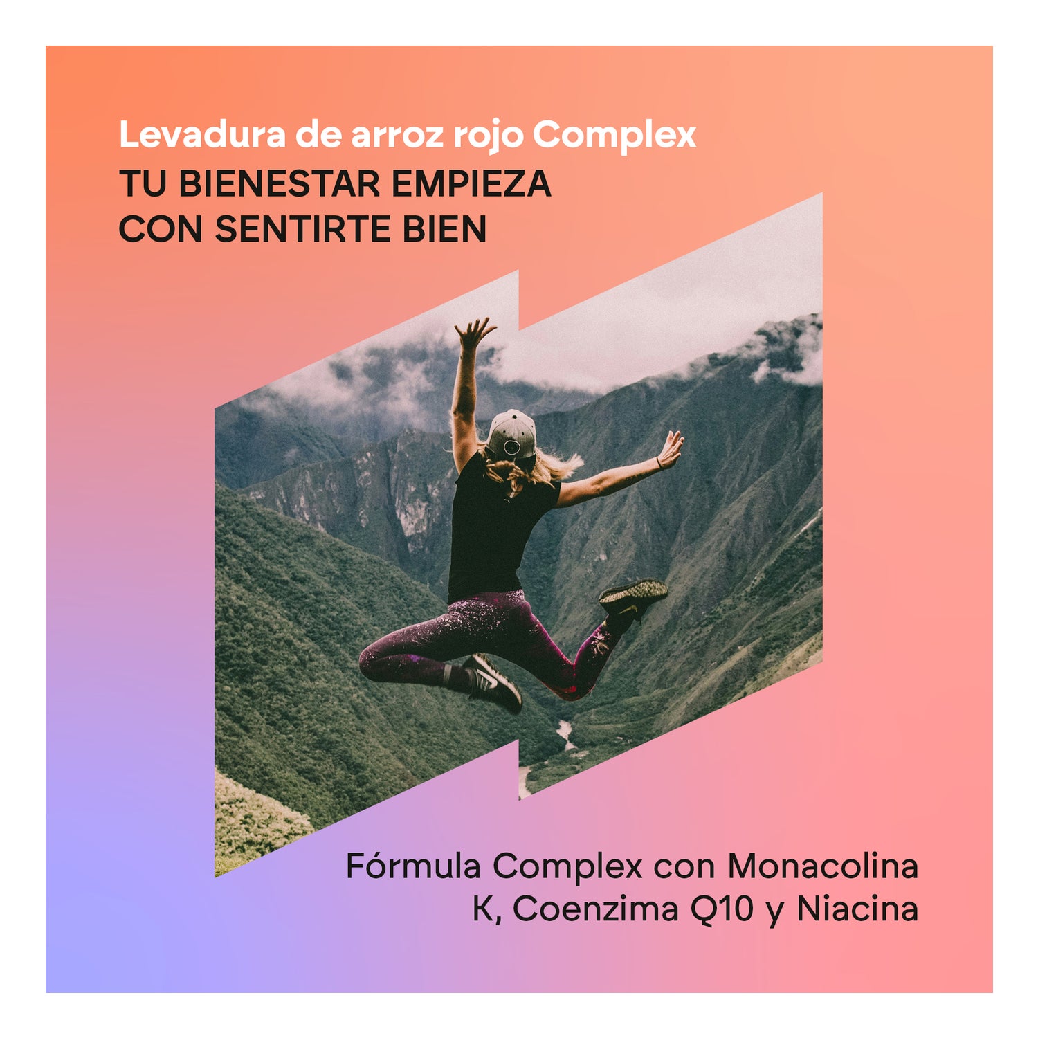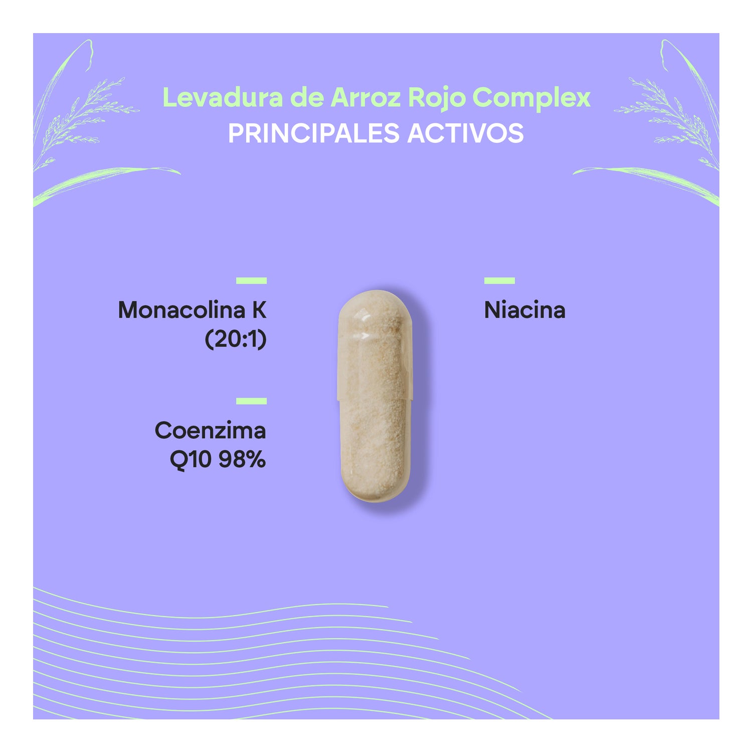 Elaborado a base de levadura de arroz rojo, un arroz fermentado en combinación con coenzima Q10, la vitamina C y extractos naturales de salvia, ajo, astrágalo y caña de azúcar. Además, contiene 2,90 miligramos de monacolina por cápsula.