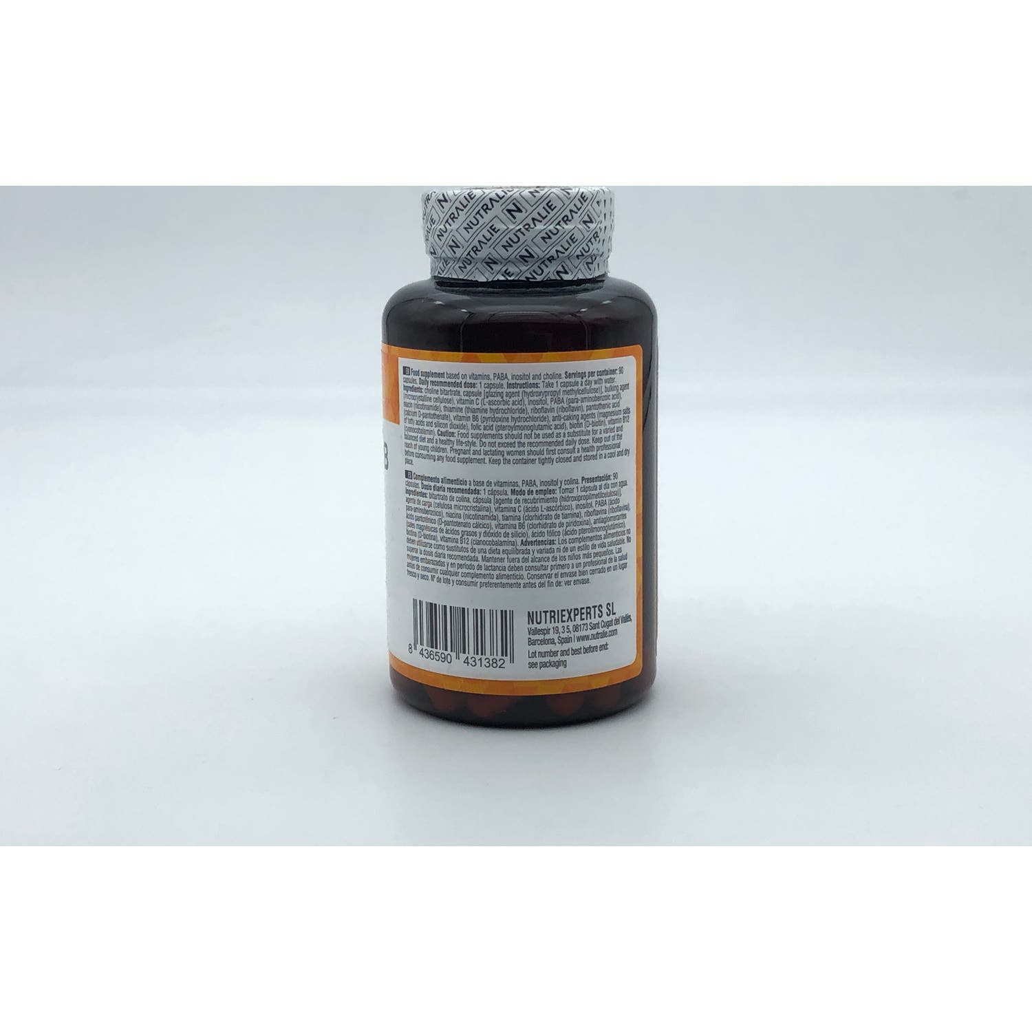 Nutralie Vitamina B Complex con Vitamina C + Colina + Inositol + PABA 90caps es un complemento alimenticio que contribuye a reforzar las defensas naturales, mejorar el metabolismo energético y contrarrestar el cansancio y la fatiga.