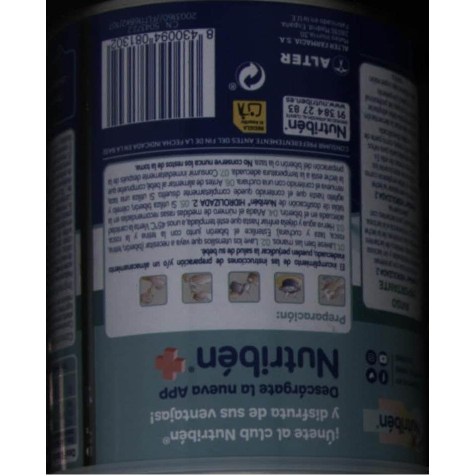 Maltodextrina, aceites vegetales (aceite de girasol, aceite de coco, aceite de soja y aceite de borraja), hidrolizado de caseína de leche de vaca, fructooligosacáridos, minerales (fosfato potásico, fosfato cálcico, cloruro magnésico, hidróxido cálcico, cloruro cálcico, citrato cálcico, sulfato ferroso, sulfato de zinc, sulfato cúprico, sulfato de manganeso, yoduro potásico y selenito sódico), emulgentes (ésteres cítricos de mono y diglicéridos de ácidos grasos y lecitina de soja), triglicéridos de cadena media, Lactobacillus rhamnosus, aceite de la microalga Schizochytrium sp., cloruro de colina, L-cistina, vitaminas (ácido L-ascórbico, acetato de DL-α-tocoferol, nicotinamida, D-pantotenato cálcico, riboflavina, acetato de retinol, clorhidrato de tiamina, clorhidrato de piridoxina, ácido fólico, filoquinona, D-biotina, colecalciferol y cianocobalamina), L-triptófano, inositol, taurina, nucleótidos (5'-monofosfato de citidina, 5'-monofosfato de uridina disódica, 5'-monofosfato de adenosina, 5'-monofosfato de guanosina disódica y 5'-monofosfato de inosina disódica), L-carnitina y antioxidantes (extracto rico en tocoferoles y palmitato de ascorbilo).