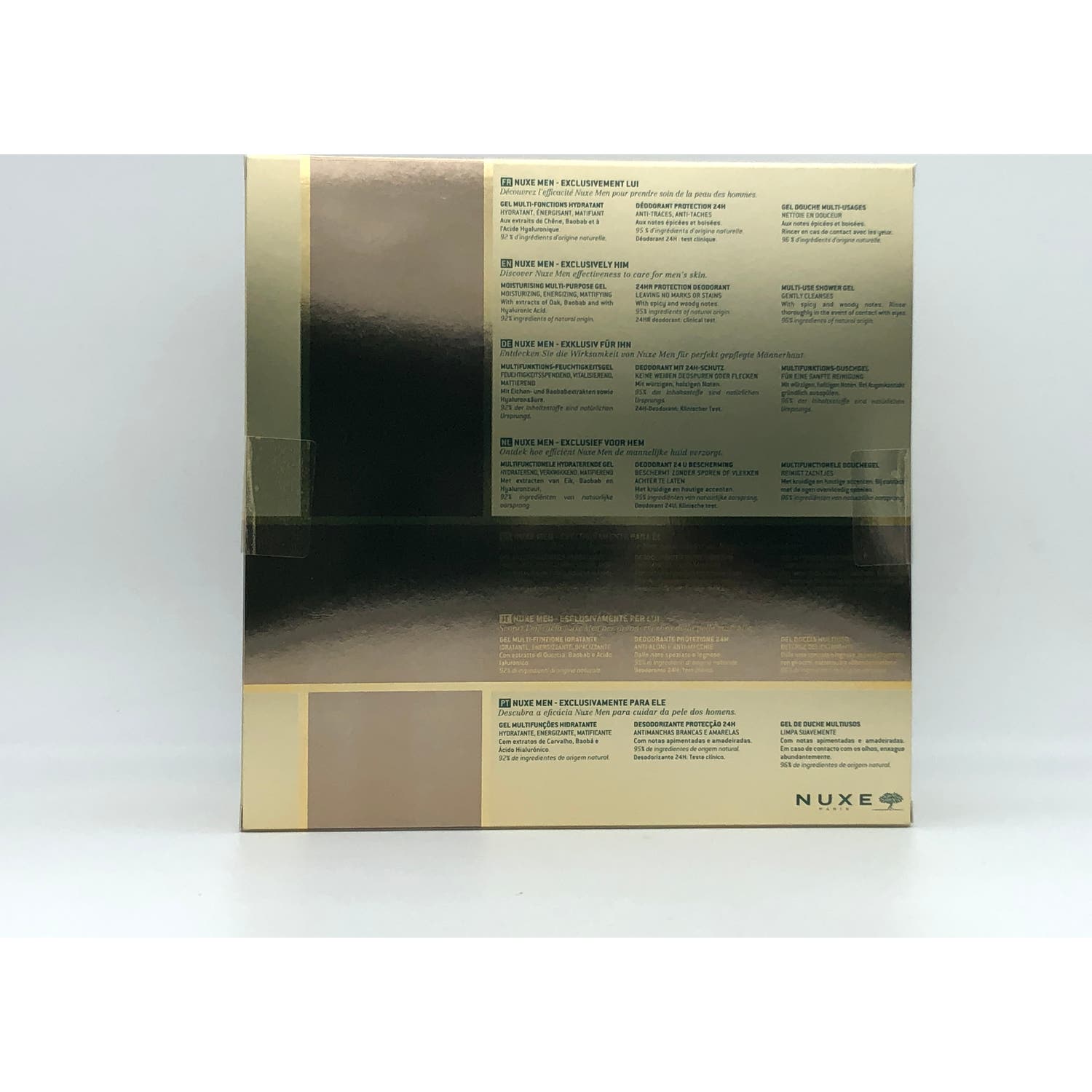 La eficacia Nuxe para hombre en un Coffret Nuxe Men: Reúne los esenciales multi-funciones de los tratamientos masculinos para cuidar de su piel a diario.