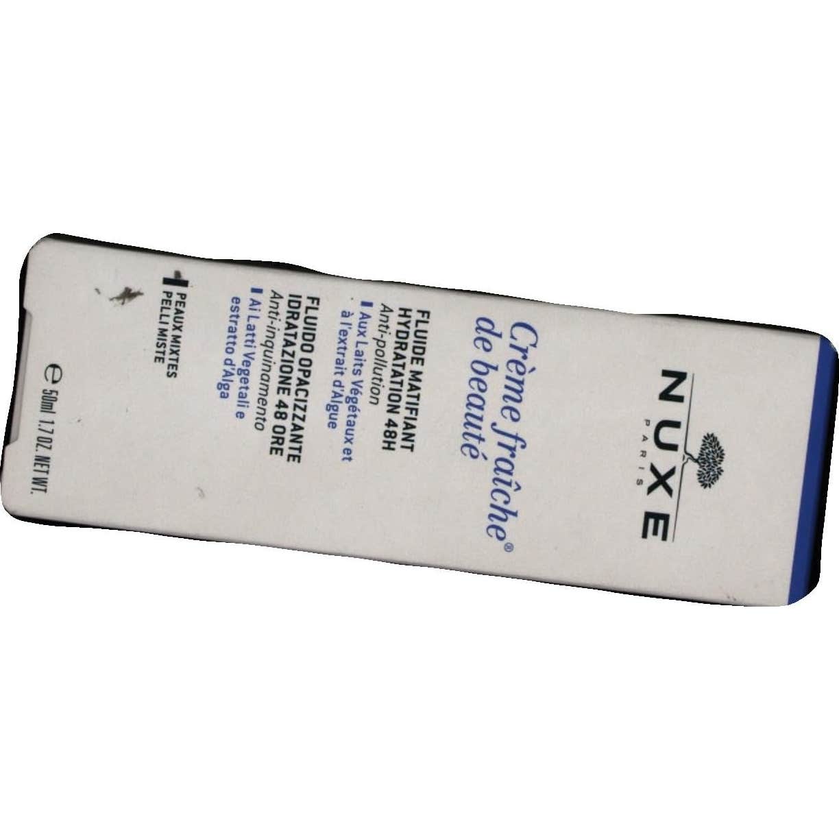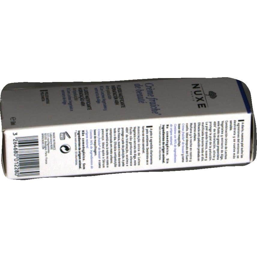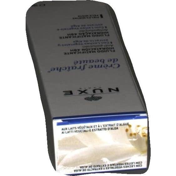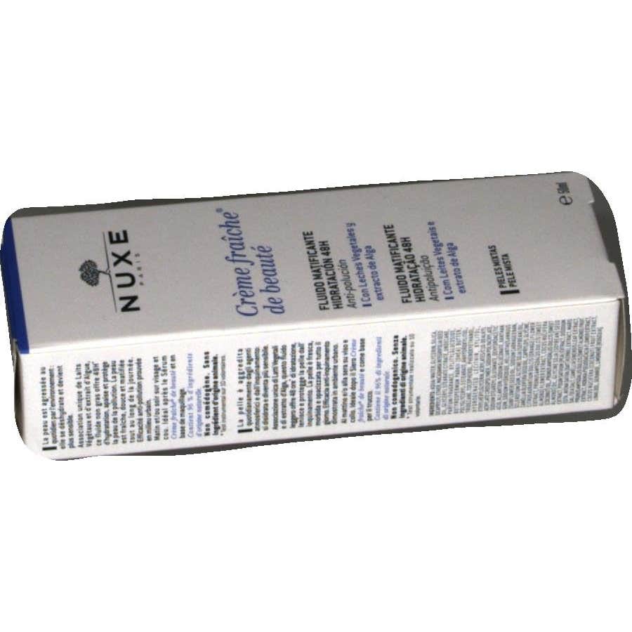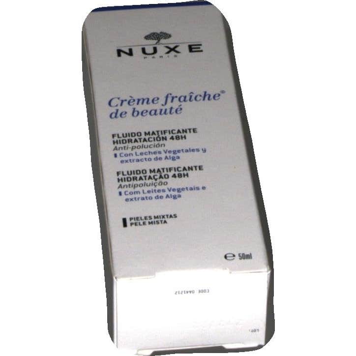 Nuxe Crème Fraîche de Beauté Fluido Matificante Hidratante 48h 50ml combina leches vegetales y extracto de alga, proporcionando así 48h de hitratación, que alivia y protege la piel de la polución del entorno urbano.